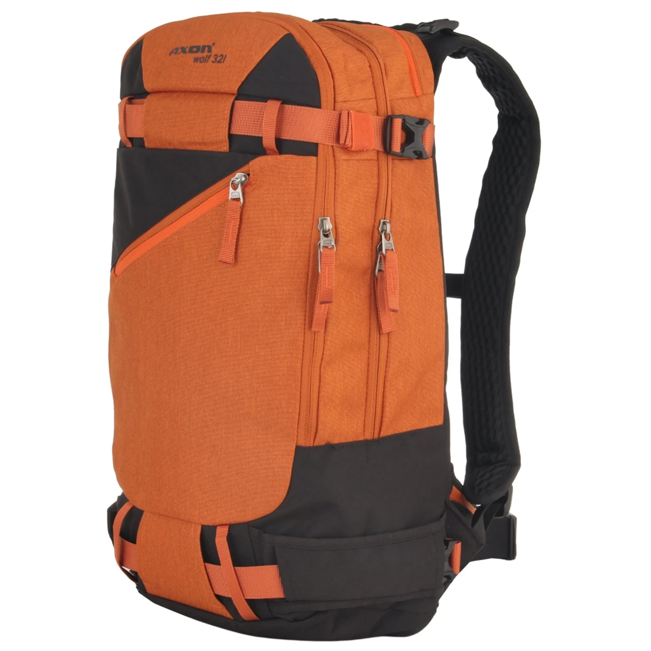 Sportovní batoh WOLF od firmy Axon má odvětraná polstrovaná záda ERS. Ramenní popruhy se zesíleným polstrováním jsou anatomicky tvarované s výškově nastavitelným prsním popruhem s píštalkou, bederní popruh zajistí pevné a pohodlné usazení batohu na Vašich zádech. Batoh má velkou hlavní kapsu a hlubokou přední kapsu na zip, přední kapsu a horní kapsu na zip na drobnosti. Na batoh lze po stranách uchytit lyže. Batoh je uzpůsoben pro vak na vodu.