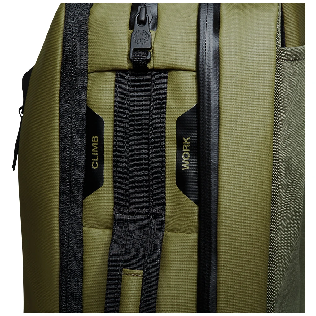 Městský batoh Seon 3-Way 20 od značky Mammut je rozdělen na dvě komory, kde každá z nich má svůj vlastní přístup. Jedna komora slouží pro věci na trénink s vlastním zipem a druhá komora pro pracovní věci s přístupem ze zad a kapsou na notebook. Batoh má polstrované ramenní popruhy, 2 madla pro nesení v ruce a voděodolnou kapsu na cennosti.