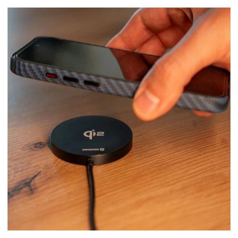 Bezdrátová nabíječka Swissten MagPuck přináší nový standard pohodlí a výkonu díky podpoře Qi2. Nabíjí rychlostí až 15 W, čímž zajišťuje maximální účinnost a minimální ztráty energie. Je kompatibilní s iPhony od modelu 12 výše, řadami Samsung S23–S25 i s dalšími zařízeními podporujícími Qi2 standard.
