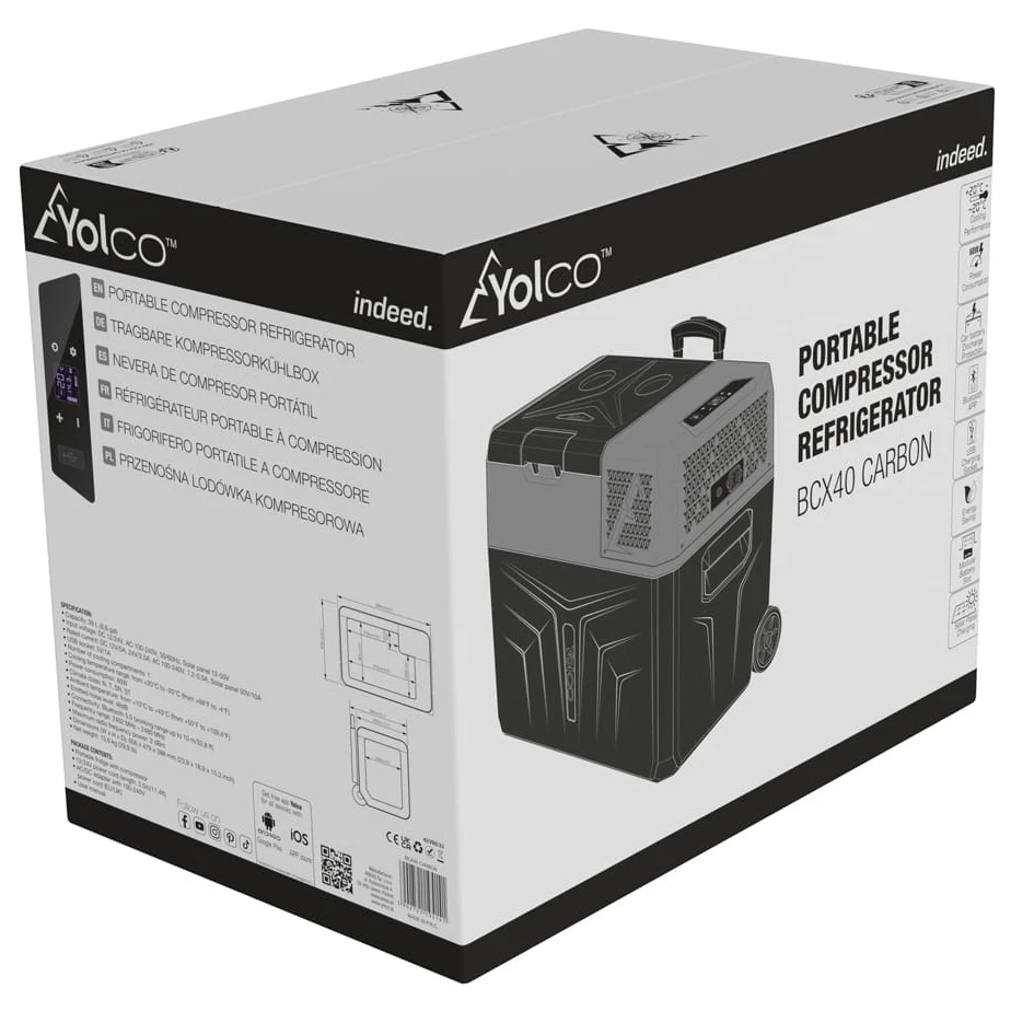 Yolco BCX40 je ideální volbou pro kempování, dovolenou v karavanu, ale i pro domácí použití. S objemem 39 litrů a kompresorovou technologií zvládne chladit i mrazit potraviny až do −20 °C – rychle, efektivně a s nízkou spotřebou energie.