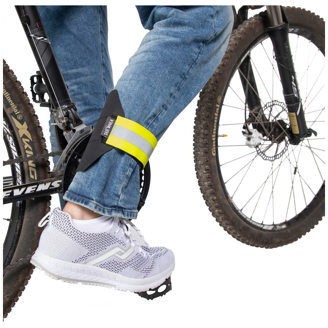 Nastavitelný chránič kalhot Pants Protector Tatonka se suchým zipem a reflexní páskou chrání nohavice před řetězem a nečistotami.