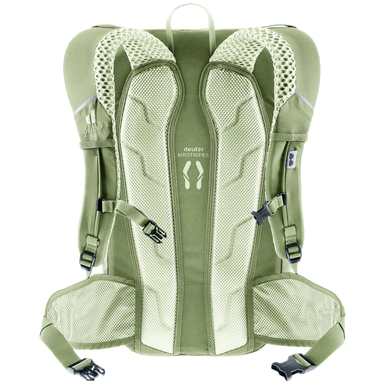 Zádový systém Airstripes společně s pohodlnými polstrovanými ramenními popruhy ActiveFit nabízí maximální pohodlí a prodyšnost díky menší kontaktní ploše. Pro pevné a bezpečné umístění je zde nastavitelný dvoucestný hrudní a polstrovaný bederní pás.
