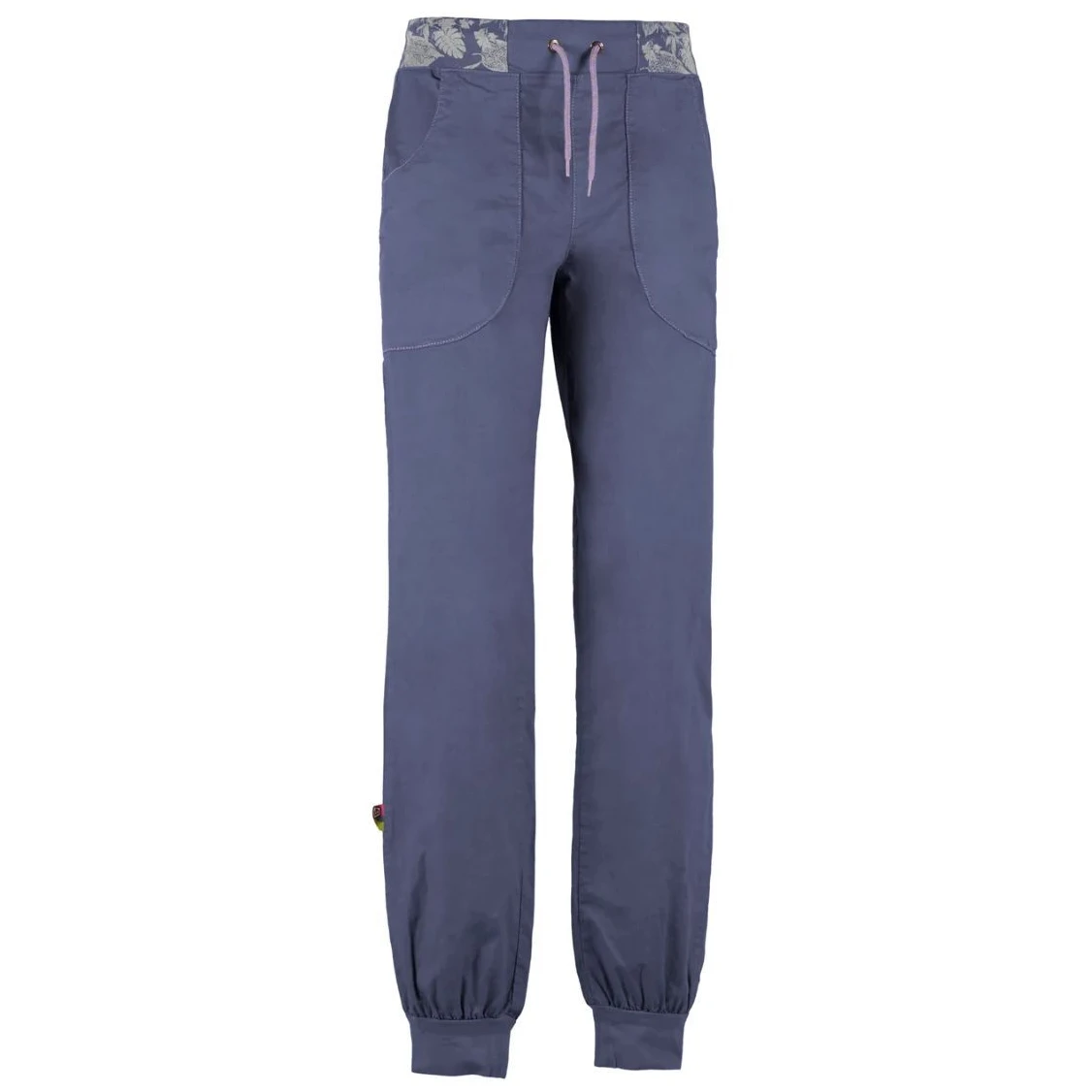 Moderní dámské kalhoty Aria Women's od firmy E9 jsou vyrobeny z 52% organického lnu, 46% organické bavlny a 2% elastanu. Kalhoty mají elastický pás z potisknuté látky bez zapínání a elastický spodní lem nohavic. Mají dvě velké přední kapsy. Na levé kapse je vyšité malé logo E9. Jsou vyrobeny v Itálii s minimálním znečištěním životního prostředí a s důrazem na extravagantní provedení, unikátní design a komfort při lezení.