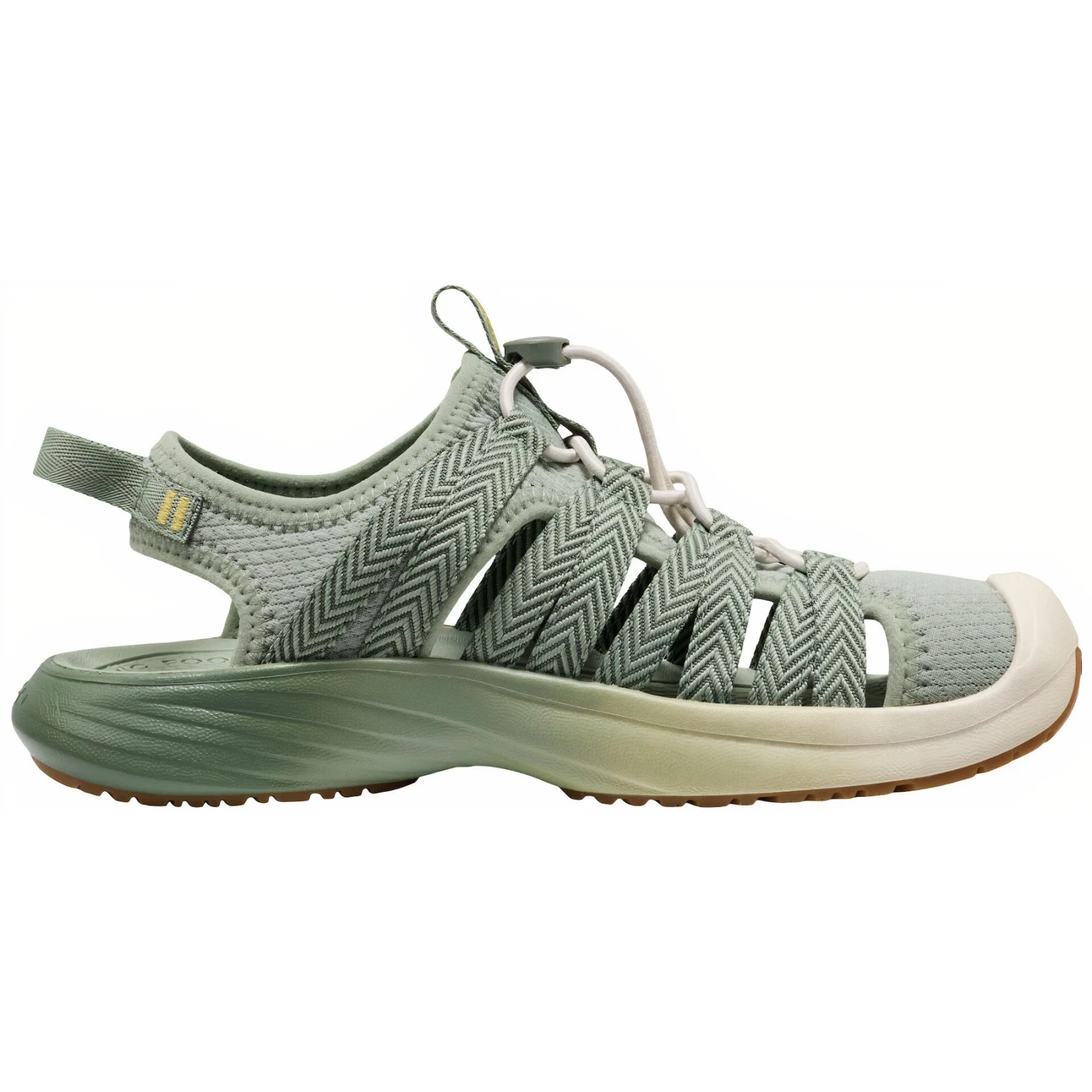 Keen Whisper Lite Women jsou moderní dámské outdoorové sandály navržené pro aktivní pohyb od města až po vodní prostředí. Svršek z lehké syntetické tkaniny a polyesterového popruhu rychle schne a dobře odolává vlhkosti, takže je ideální na výlety, cestování i vodní aktivity. Díky pružnému bungee stahování se sandály snadno nazouvají a přizpůsobí noze, zatímco tvarovaná stélka a pěnové tlumení poskytují komfort při celodenním nošení.