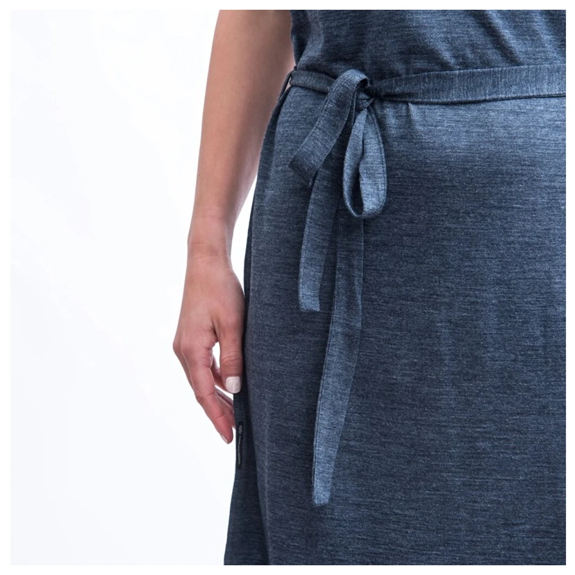 Šaty kombinují merino vlnu a přírodní vlákno Tencel, což přináší jedinečné vlastnosti pro každodenní použití. Materiál je vysoce savý, rychleschnoucí a velmi prodyšný, takže se budete cítit svěže i při vyšších teplotách.