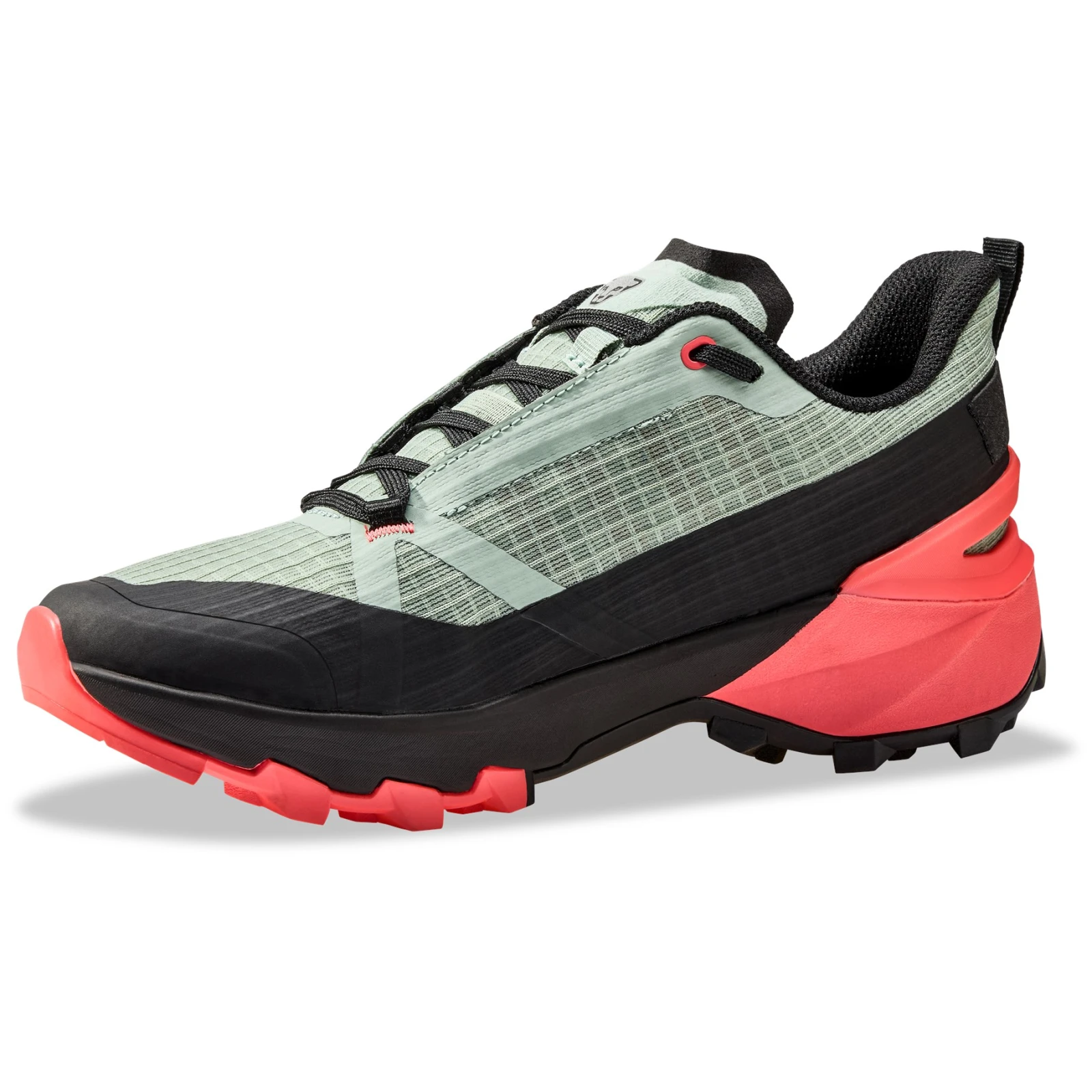 Pružný svršek z měkké síťoviny zajišťuje prodyšnost a pohodlí, zatímco odpružená mezipodešev pomáhá pohlcovat nárazy při chůzi nebo běhu ve svazích. Podešev s technologií VIBRAM® Megagrip nabízí spolehlivou přilnavost na suchém i vlhkém povrchu, takže se lépe pohybujete i po mokrých kamenech nebo štěrku. Pro stabilitu v technickém terénu je v patní části i na boku boty umístěna výztuha, která pomáhá udržet nohu na místě i na kluzkých úsecích.