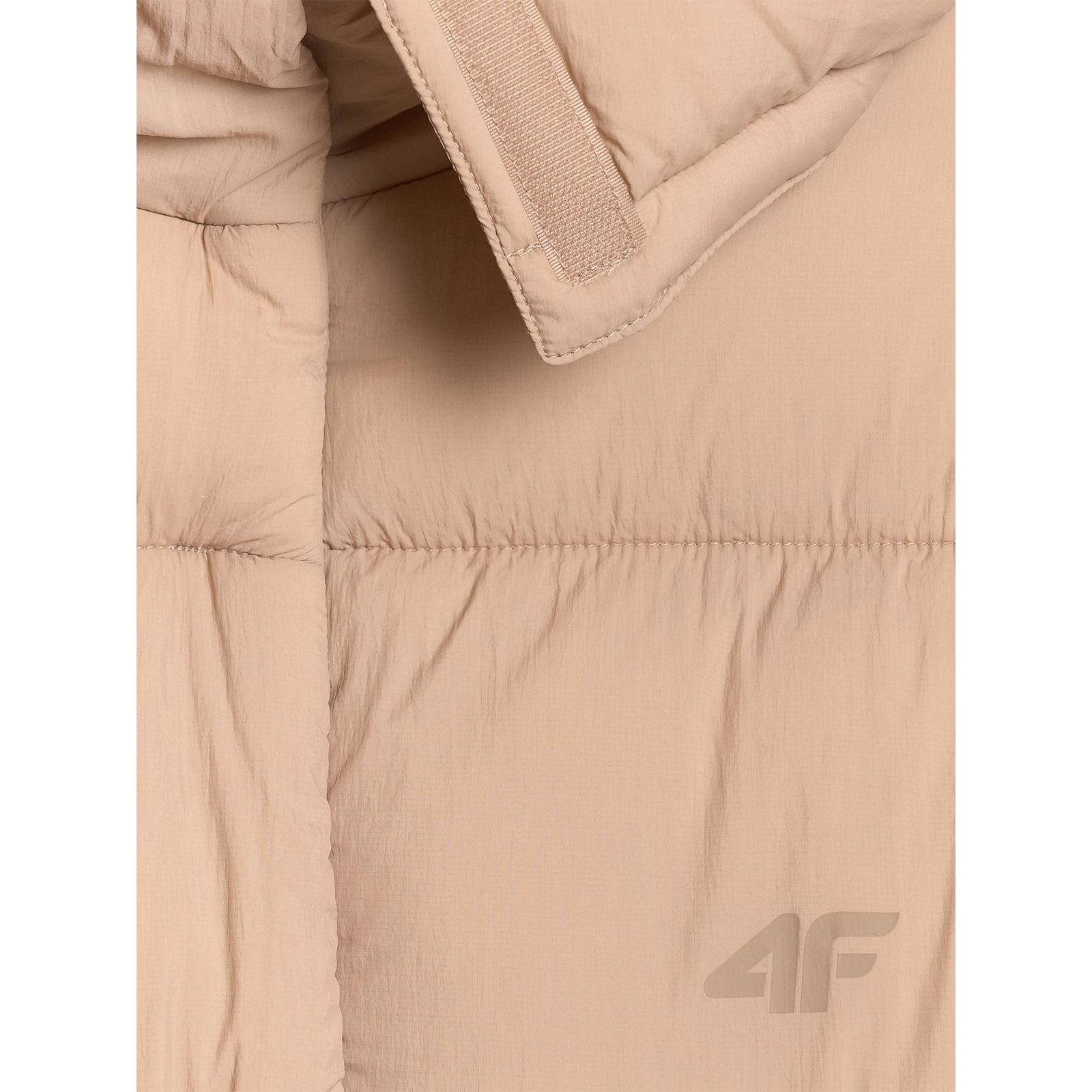 Dámský kabát Down Jacket F588 4F v oversize střihu s délkou ke kolenům, syntetickou výplní a hydrofobní úpravou poskytuje styl, hřejivost i ochranu proti vlhkosti.