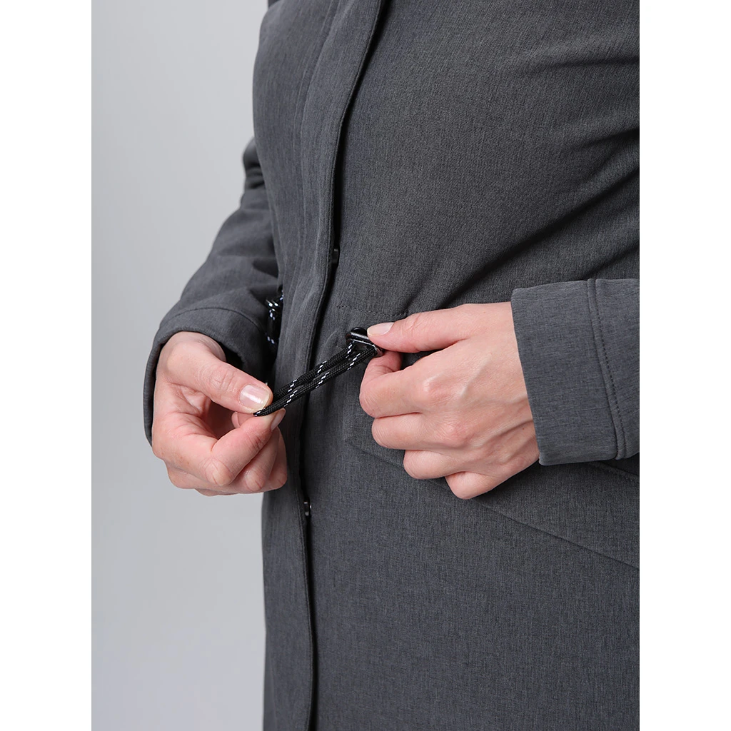 Pas lze snadno stáhnout pomocí gumičky a pevná kapuce je nastavitelná podle potřeby. Spodní okraj a rukávy jsou bez stahování, což zajišťuje pohodlí. Dvě kapsy na bocích jsou ideální pro uložení nezbytností jako jsou peněženka, mobil nebo klíče.