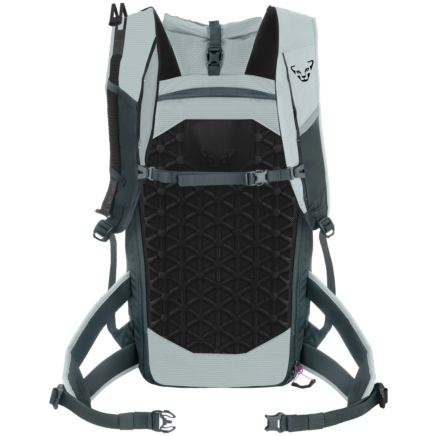 Batoh poskytuje dvě možnosti uchycení lyží pomocí lyžařských háků DYNAFIT: diagonálně nebo na bocích. I zde je integrovaná síť na přilbu a uchycení na dva cepíny.