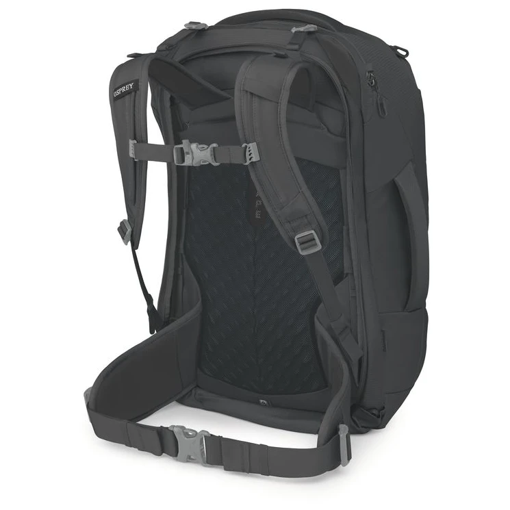 Batoh nabízí velký přední vstup do hlavní komory, kapsu na toaletní potřeby s přímým zipem, vnitřní kompresní popruhy i přední kompresní pásky pro stabilizaci nákladu. Nechybí vnitřní síťovaná kapsa na zip, multifunkční vnitřní přihrádka na hydrovak nebo notebook do velikosti do 16” a polstrovaná horní i boční madla. K dispozici jsou také úchyty pro připnutí batohu Farpoint/Fairview. Splňuje parametry příručního zavazadla a má uzamykatelné posuvníky na zipu hlavní přihrádky.