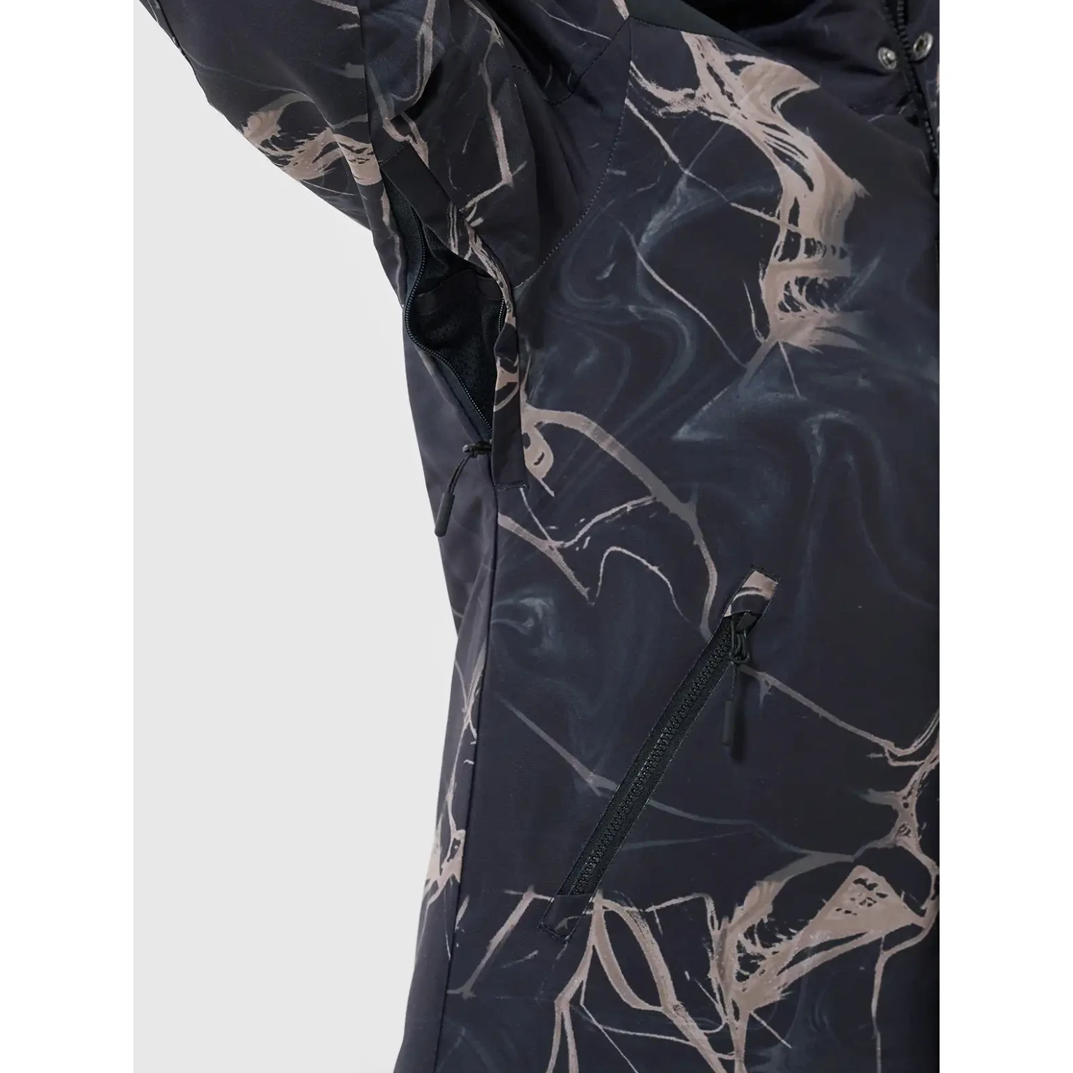 Pro maximální komfort při pohybu má bunda profilované lokty, odvětrávání v podpaží na zip a integrovaný sněhový pás. K praktickým detailům patří kapsa na skipas, vnitřní kapsa na brýle, náprsní kapsa, dvě boční kapsy na zip a vnitřní kapsa na suchý zip. Spodní lem lze upravit pomocí stahování se stopperem.