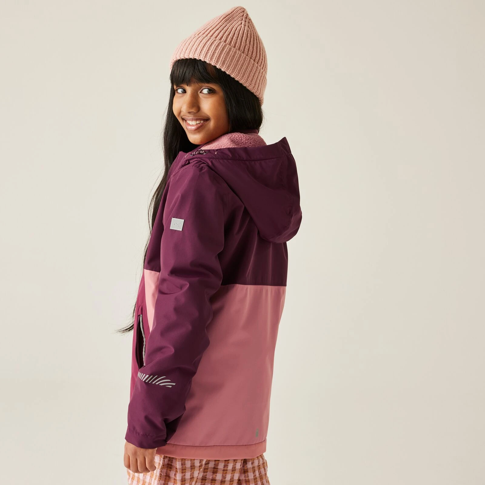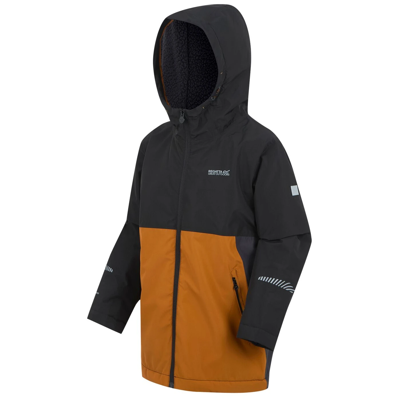 Dětská bunda Hillain Warm Lined od značky Regatta má podšívku z borg fleecu a reflexní prvky. Pevná kapuce a kapsy na zip ji činí ideální pro školní dny nebo venkovní hraní v nepředvídatelném počasí.