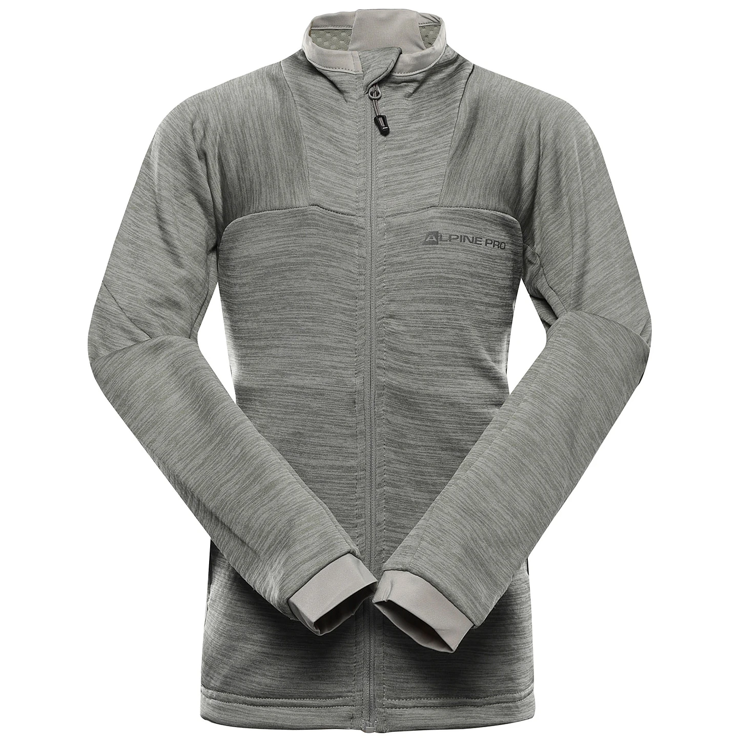 praktické detaily: dlouhý zip s krytkou u brady proti poškrábání a stojáček chránící krk před větrem
