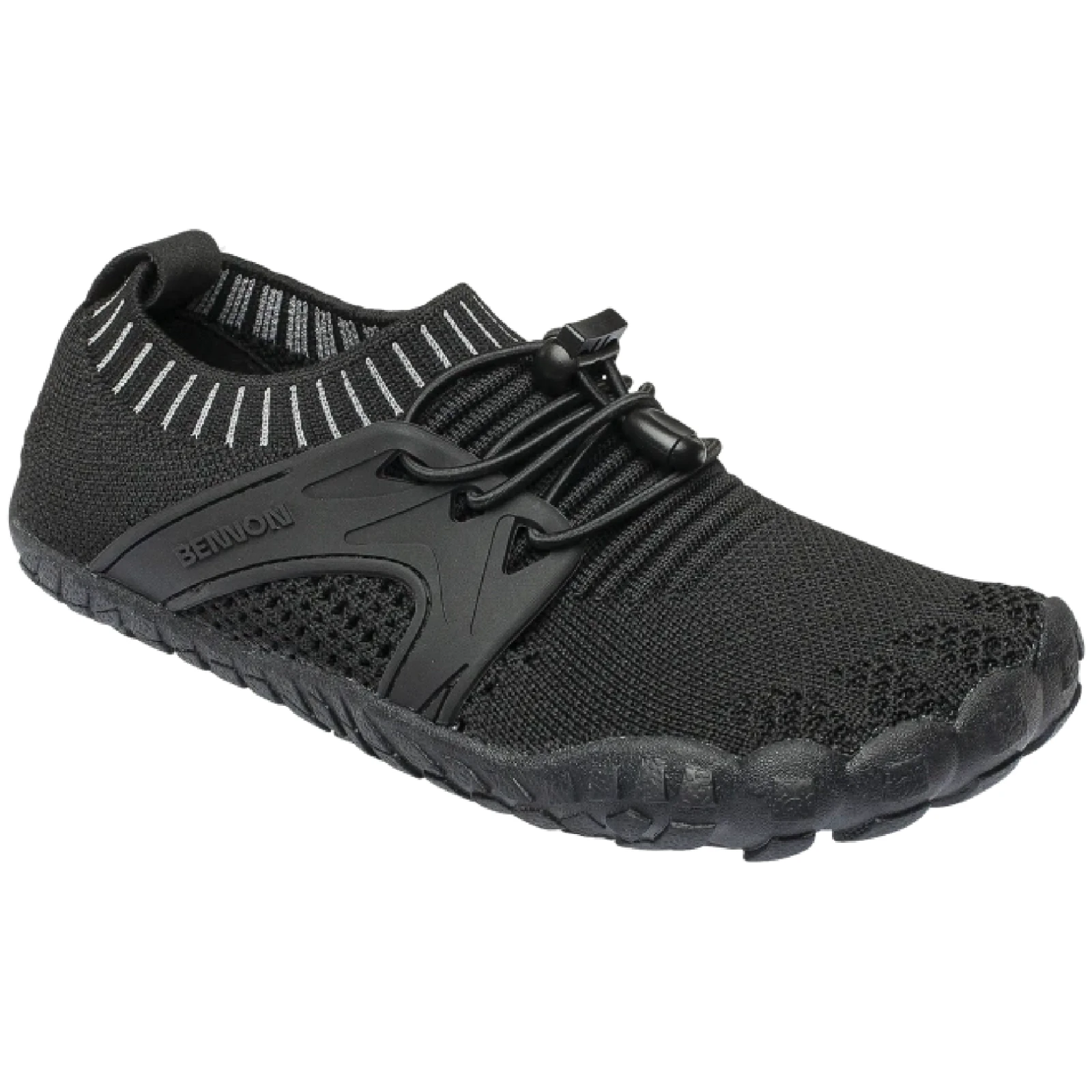 Široká špička poskytuje dostatek prostoru pro prsty, které nejsou stlačovány a mohou se pohybovat přirozeně. Tenká a pružná podešev z BARE pryže umožňuje lepší vnímání povrchu a přirozený kontakt s terénem, čímž pomáhá posilovat svaly chodidla a podporuje správné držení těla.