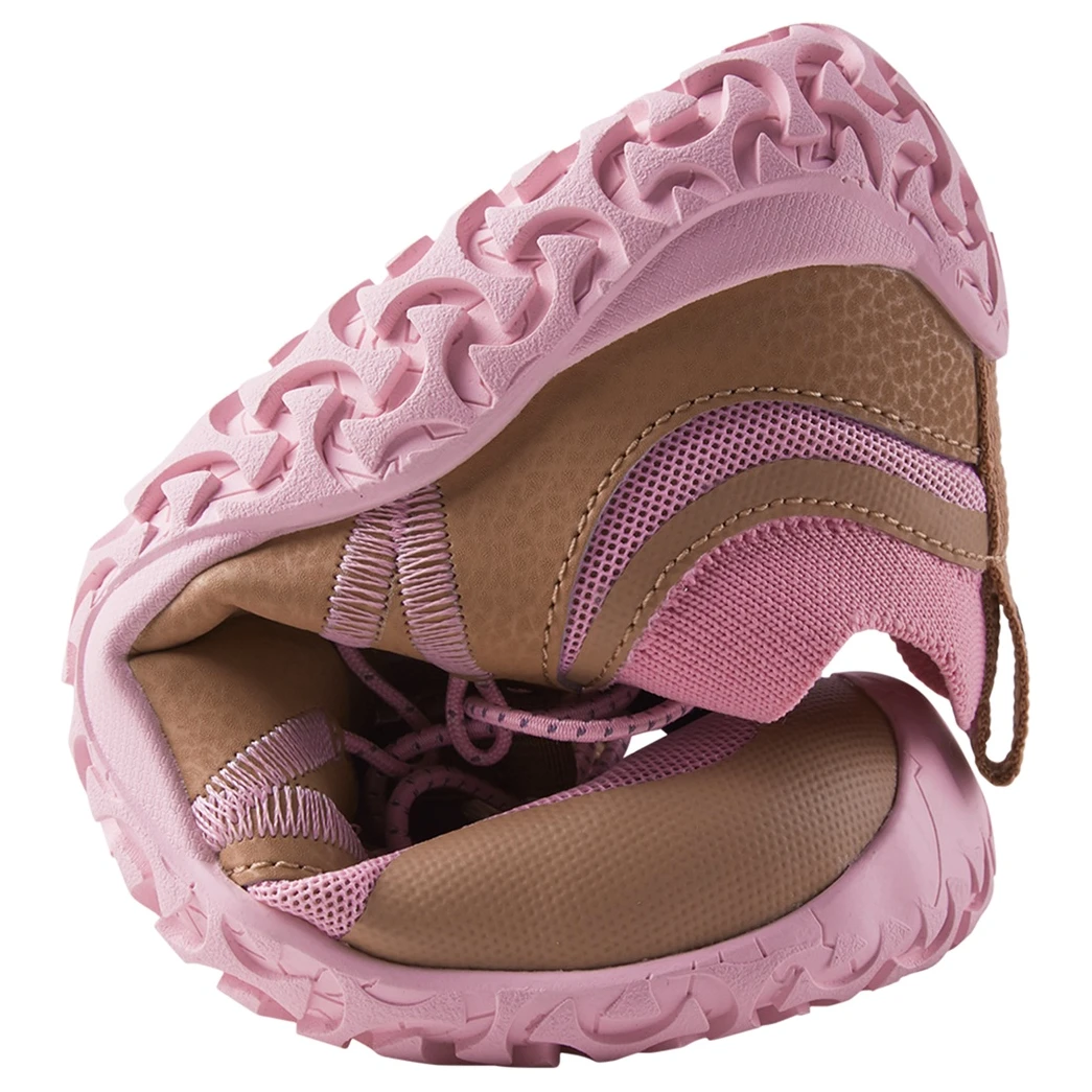 Dětské boty Vaellus od výrobce Reima jsou navržené s důrazem na přirozený pohyb a zdravý vývoj dětských chodidel. Konstrukce s nulovým rozdílem mezi patou a špičkou (zero heel drop) podporuje přirozené držení těla a správný styl chůze. Široké kopyto poskytuje dostatek prostoru pro prsty, což zvyšuje pohodlí a umožňuje přirozenou práci chodidla. Flexibilní podrážka se snadno přizpůsobuje pohybu a podporuje stabilitu i cit pro terén.