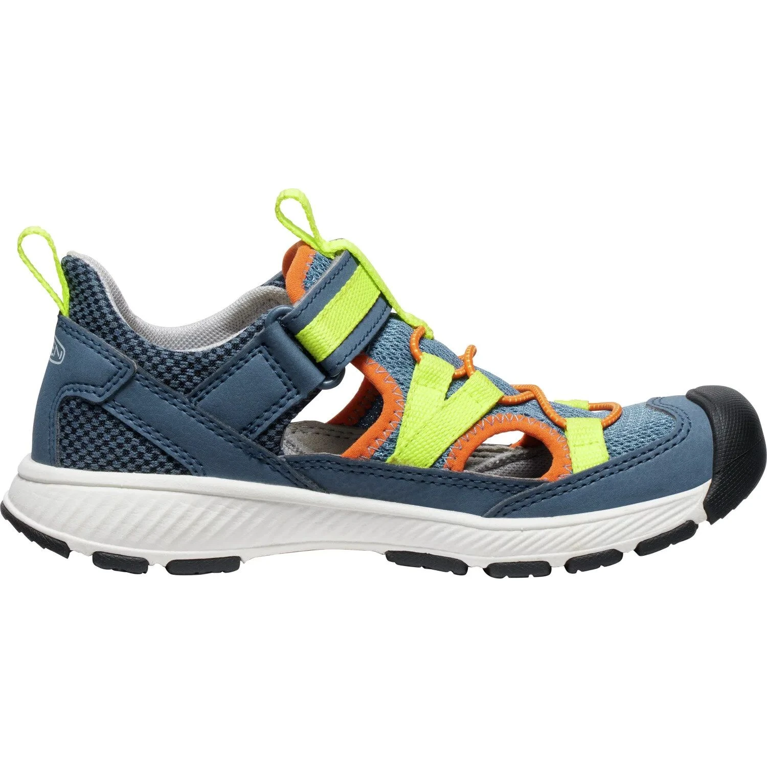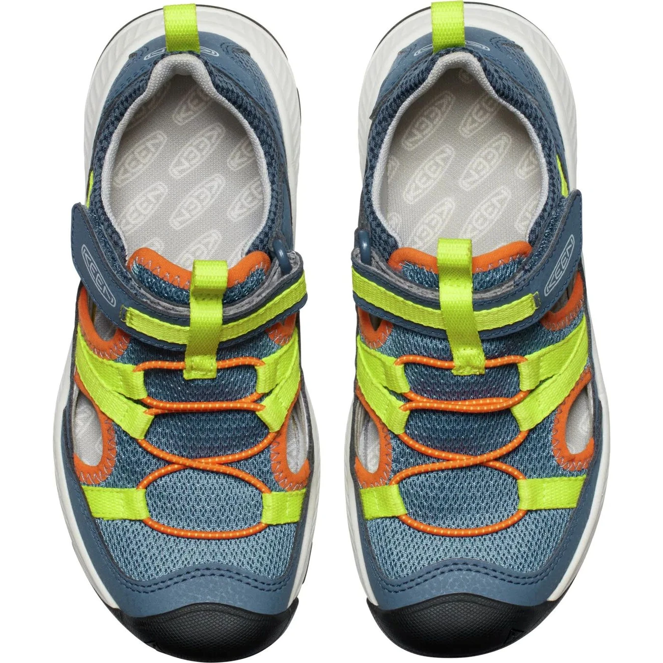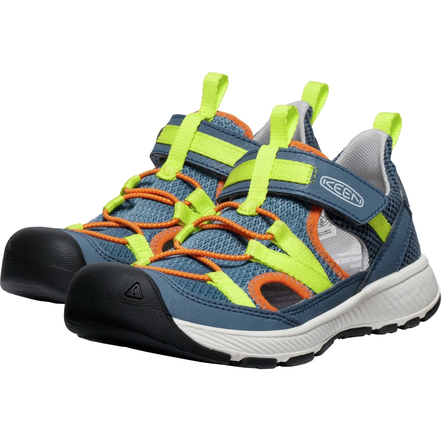 Dětské sandály Motozoa od značky Keen mají svršek vyrobený z kombinace syntetického a textilního materiálu, který je navíc doplněný podšívkou ze síťoviny. Pro pohodlné nošení po celý den je tu mezipodešev EVA, ta zajišťuje měkký došlap, a PU stélka, která podpoří klenbu chodidla. Dále mají sandále gumovou podešev, která skvěle podrží na různých površích a to díky vícesměrným výstupkům. Velkou výhodou je rychlé nazouvání pomocí šněrovacího systému s lankem a s nastavitelným zapínáním. Sandále jsou ošetřeny ekologicky ohleduplnou technologií ECO ODOR CONTROL a tím se snižuje vznik zápachu.