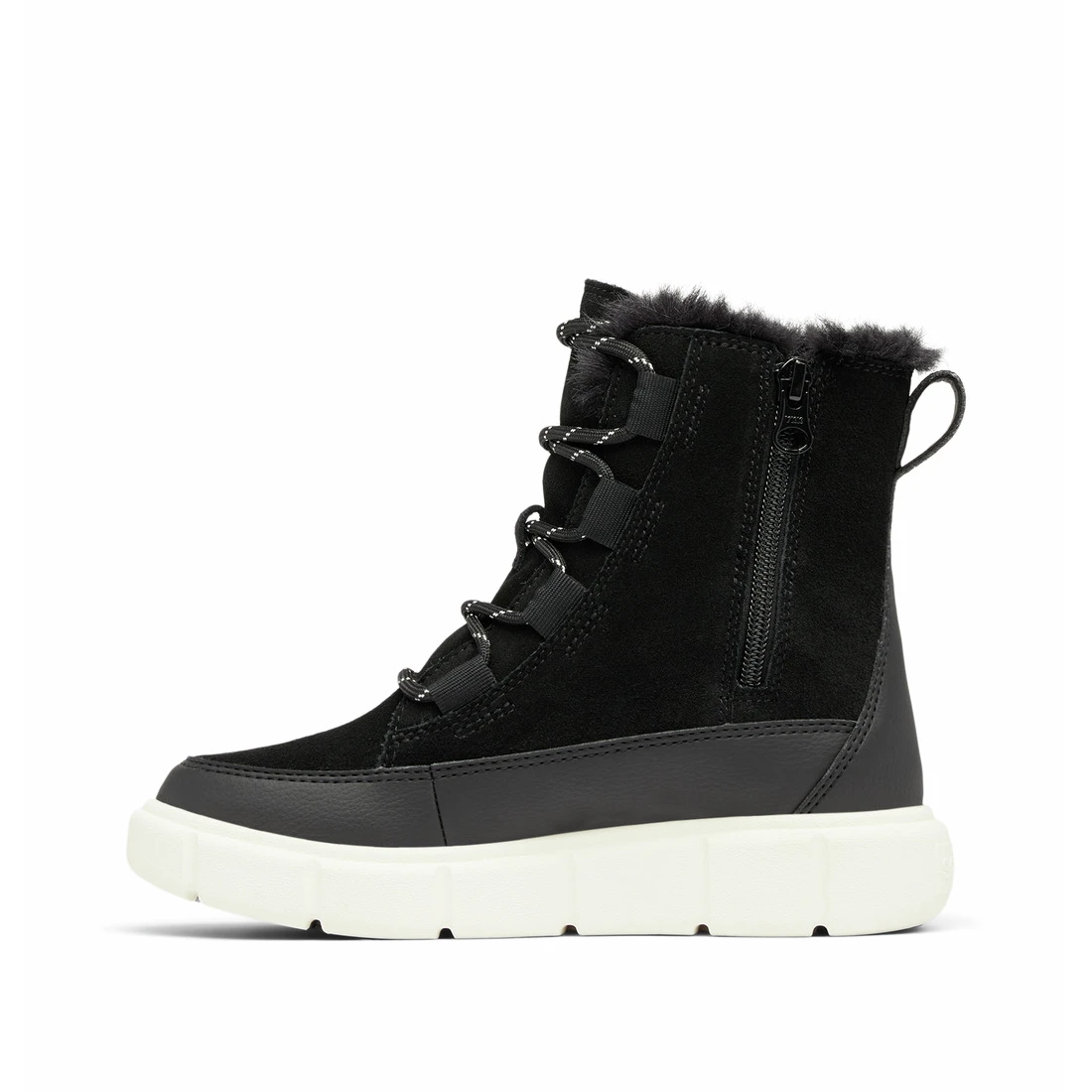 Dětské zimní boty Sorel Explorer™ III Lace Wp kombinují odolnost, teplo a pohodlí pro zimní dobrodružství. Voděodolný svršek ze semiše je doplněn syntetickými PU vrstvami a mikrofleecovou podšívkou, která udržuje nohy v teple. Praktický boční zip usnadňuje obouvání, přičemž šněrování poskytuje pevné upevnění nohy.