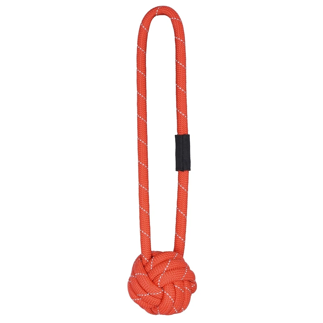 Tvar míčku skvěle létá. Vysoce pevný materiál odolá i zubům a síle velkého psa. Je totiž vyrobený z 11 mm silného horolezeckého lana, které umožňuje i divoké přetahování, což perfektně posiluje vztah mezi psem a člověkem. Dobře se drží díky pevnému madlu. Lano má reflexní prvky, takže jej lépe najdete i v hluboké trávě.