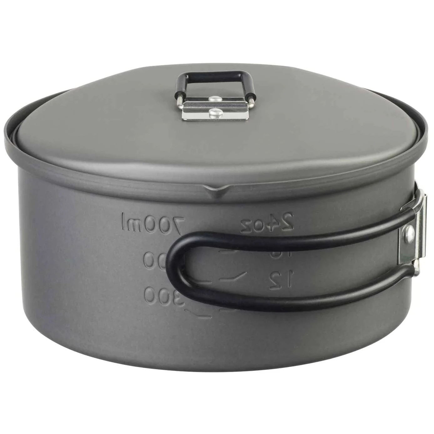 Stupnice na vnitřní straně hrnce udává objem v ml a oz. Součástí dodávky je také praktická síťovaná taška, která udrží hrnec pohromadě na cestách. Vnitřek kempingového hrnce nabízí další úložný prostor na cesty - například pro zabalená jídla nebo tuhé palivo .