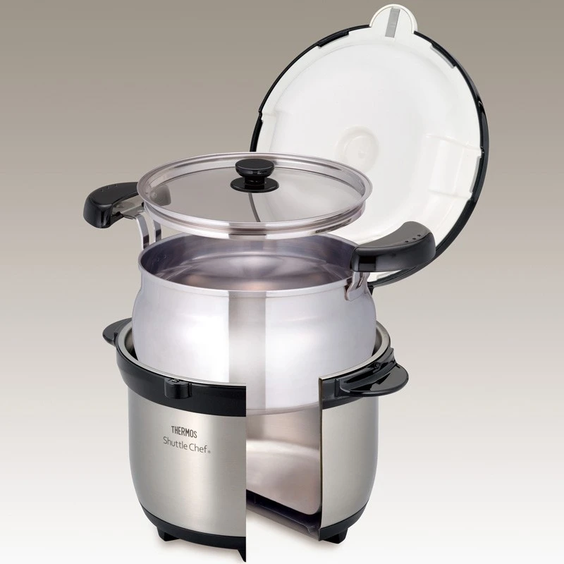 Thermos Shuttle Chef je vakuově izolovaný termohrnec určený pro úsporné, zdravé a pohodlné vaření bez nutnosti neustálého dohledu. Byl představen v Japonsku již v roce 1989 a od té doby si získal velkou popularitu mezi outdoorovými nadšenci pro snadnou přípravu jídel na chatách, v kempu nebo při rodinných setkáních na zahradě. Skvěle poslouží i pro běžné vaření doma. Jeho princip spočívá v krátkém zahřátí pokrmu na běžném vařiči a následném dovaření pomocí udržování vlastní teploty v izolované nádobě, bez dalšího přívodu energie.