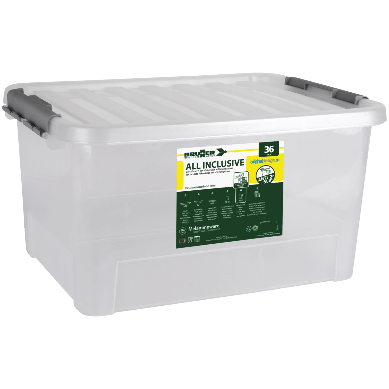 Dolomit All Inclusive od značky Brunner je vysoce odolná a stylová sada nádobí o 36 kusech, která obsahuje vše potřebné pro dokonalý zážitek z kempování.