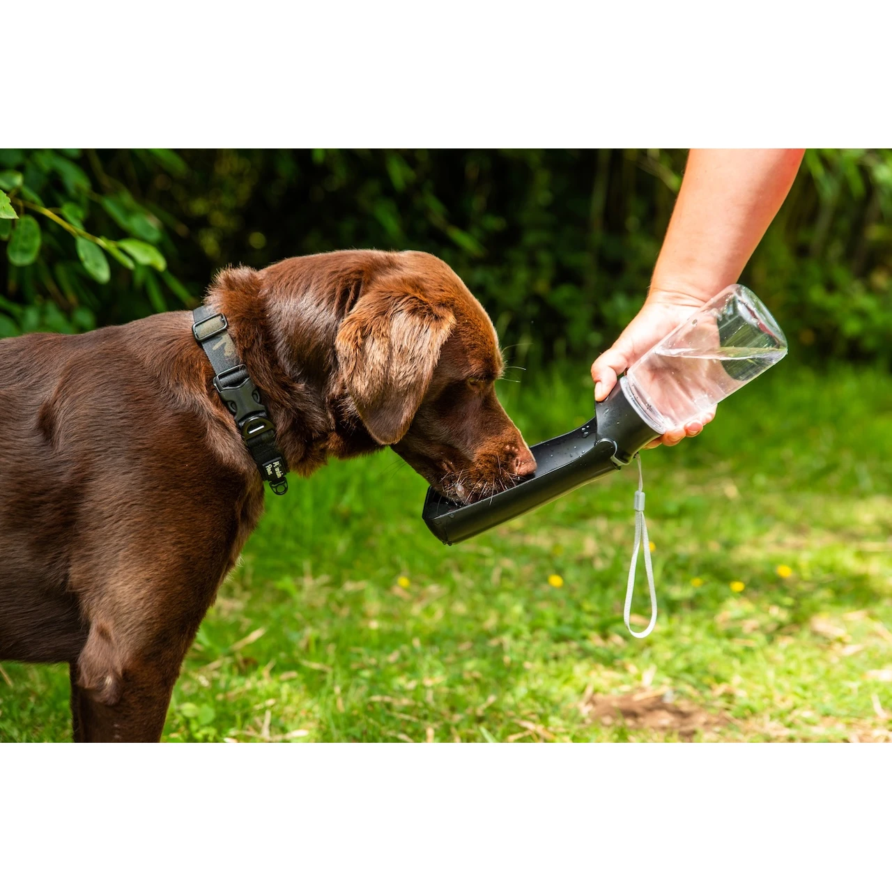 Láhev pro psa Mountain Paws Folding Dog Water Bottle o obsahu 550 ml umožňuje mít vodu vždy po ruce a psa snadno napájet.
