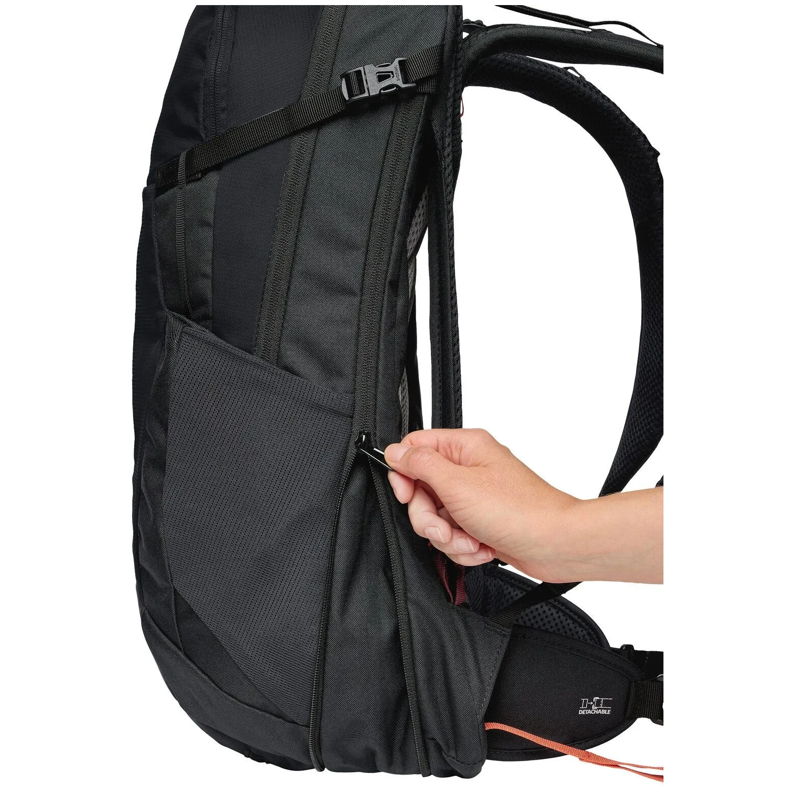 Kompresní popruhy zajišťují stabilní držení nákladu v každé situaci nošení. Batoh má jednu hlavní komoru na zip, kterou doplňuje řada praktických kapes a úchytů, například kapsa na cennosti, prostorná kapsa na přední straně, poutka na trekové hole, zařízení pro hydratační systém, vnější boční kapsy na láhve s pitím a integrovaná pláštěnka.