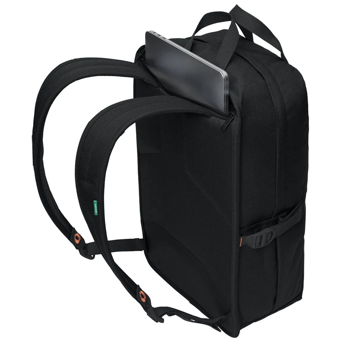 Batoh má zadní polstrovanou přihrádku na notebook, která je přístupná shora, hlavní přihrádku s praktickým organizérem a dvě boční kapsy. Samozřejmostí jsou kompresní popruhy a madlo díky kterému se batoh snadno zvedá.