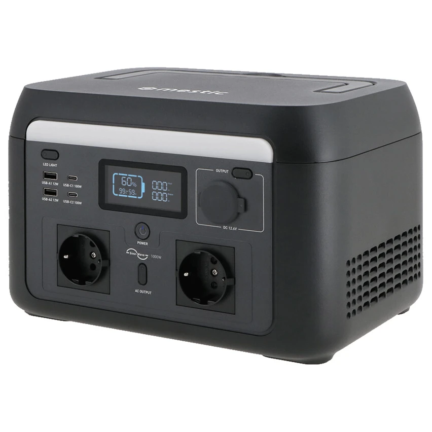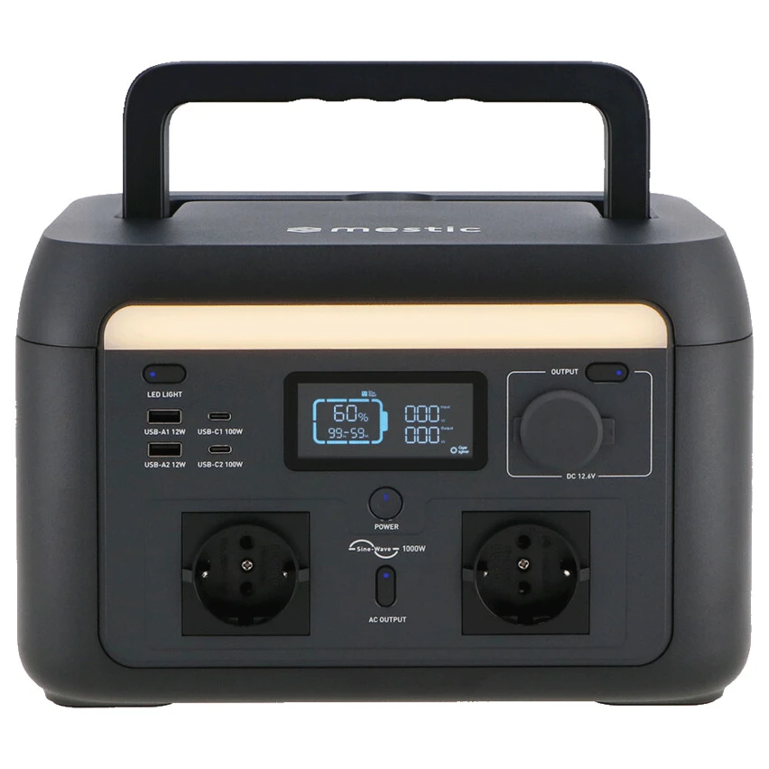 Nabíjecí stanice Mestic MPS-1000 nabízí dostatek energie pro všechna vaše dobrodružství mimo dosah elektrické sítě. Se svým výkonem 1000 W (špičkově až 1600 W) a kapacitou 614 Wh zvládne napájet vše od světel a notebooků až po menší kuchyňské spotřebiče. K dispozici je široké spektrum výstupních konektorů – AC, DC, USB-A i USB-C – takže připojíte všechna běžná zařízení. Díky vestavěnému regulátoru můžete nabíjecí stanice bezpečně dobíjet solárním panelem a využít tak obnovitelný zdroj energie kdekoliv na cestách. Rychlé nabíjení zajistí plné dobití za pouhých 75 minut. I přes svůj výkon zůstává přístroj snadno přenositelný – váží jen 8,5 kg. Vše pohodlně ovládáte pomocí aplikace Mestic přes Bluetooth nebo Wi-Fi.