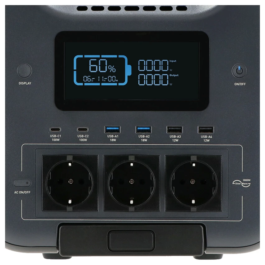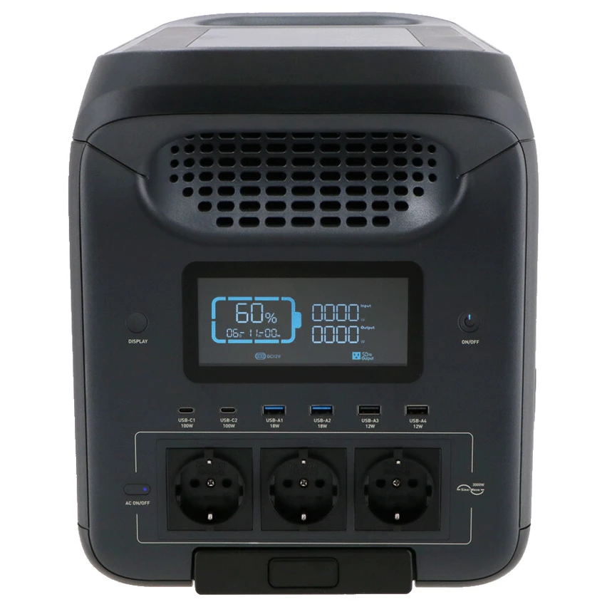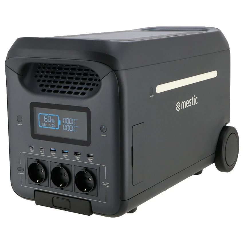 Nejvýkonnější model z řady powerstation Mestic – MPS-3000 – je ideálním řešením pro karavany, obytná auta nebo dlouhé pobyty mimo civilizaci. Díky výkonu 3000 W (špičkově až 5000 W) a kapacitě 2560 Wh můžete napájet běžné domácí spotřebiče, a to i několik zároveň. Připojení je možné přes různé konektory: AC, DC, USB-A i USB-C, takže bez problémů nabijete vše od telefonu po elektrický vařič.