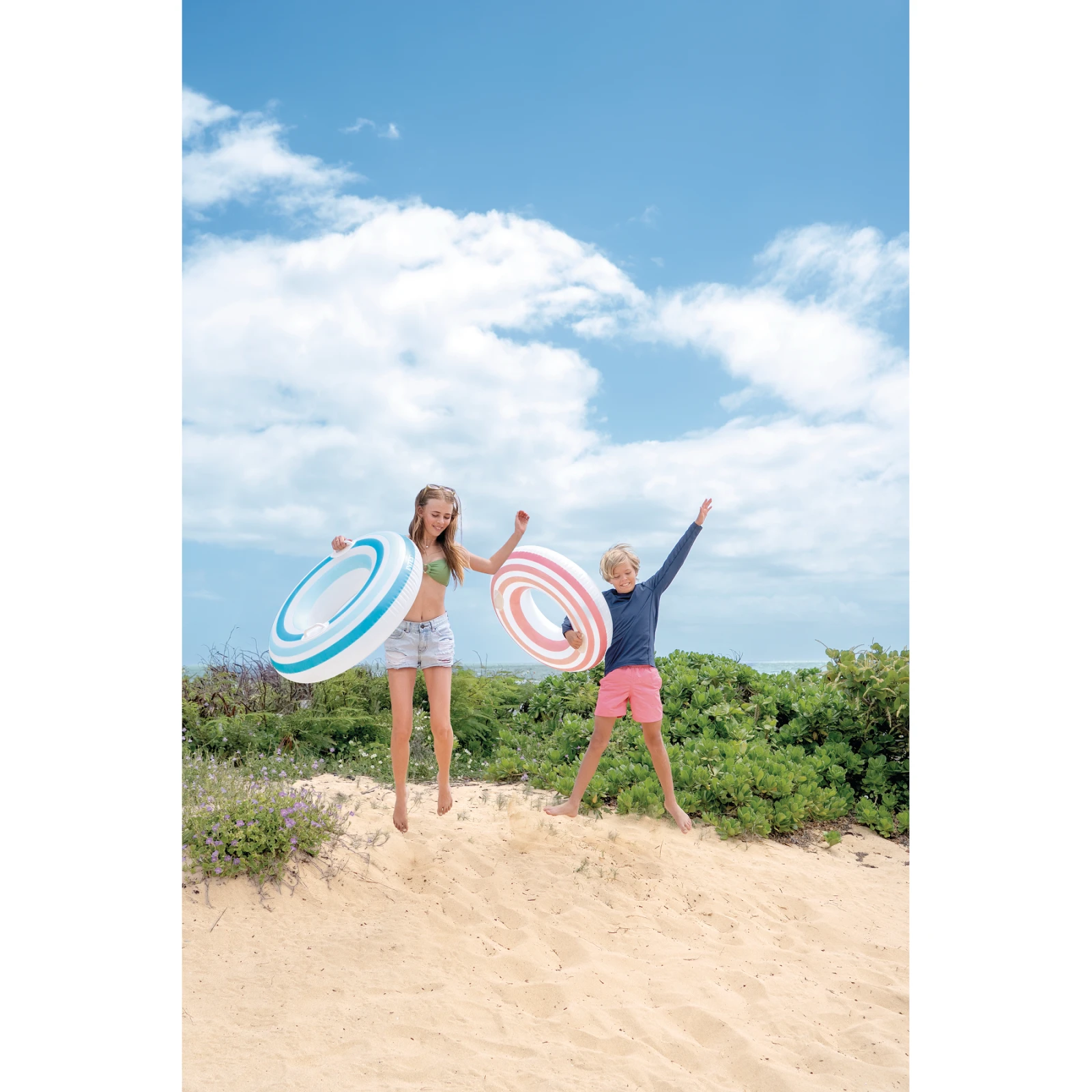 Nafukovací kruh Intex Stargaze Tubes má krásné a zářivé barvy. Na každé straně je madlo, které umožňuje stabilní usazení na kruhu. Vyrábí se ve třech barvách.