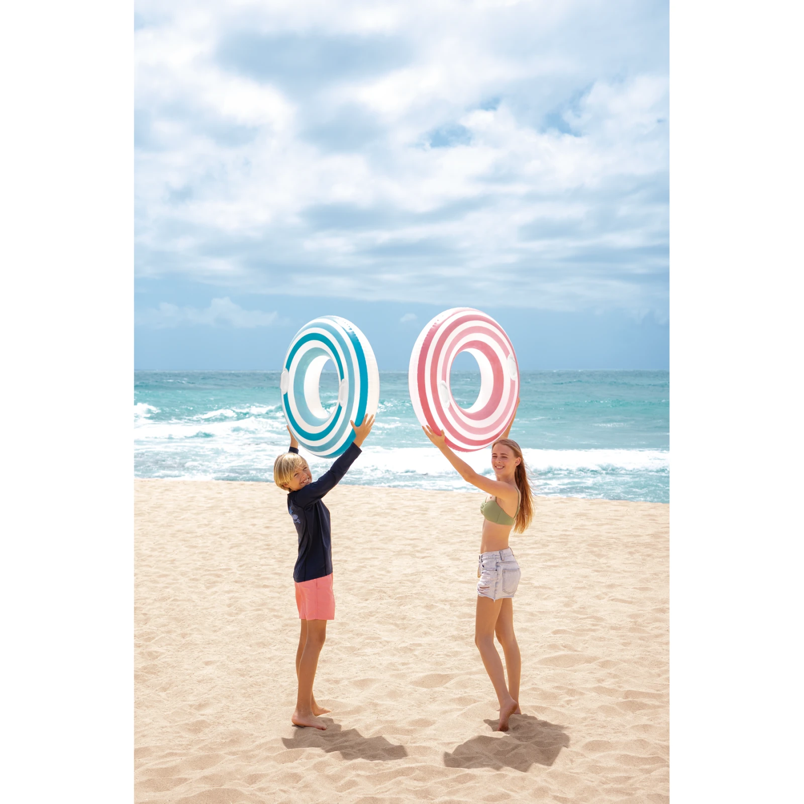 Intex Stargaze Tubes je nafukovací kruh s pevnými úchyty po stranách, které zajišťují lepší stabilitu. Má veselý barevný potisk hvězdiček a vyrábí se ve třech barevných provedeních. Vrchní část kruhu je z průhledného materiálu. Má téměř metrový průměr a je vyroben z pevného vinylu, který je odolný vůči poškození. Je vhodný pro děti od 9 let.