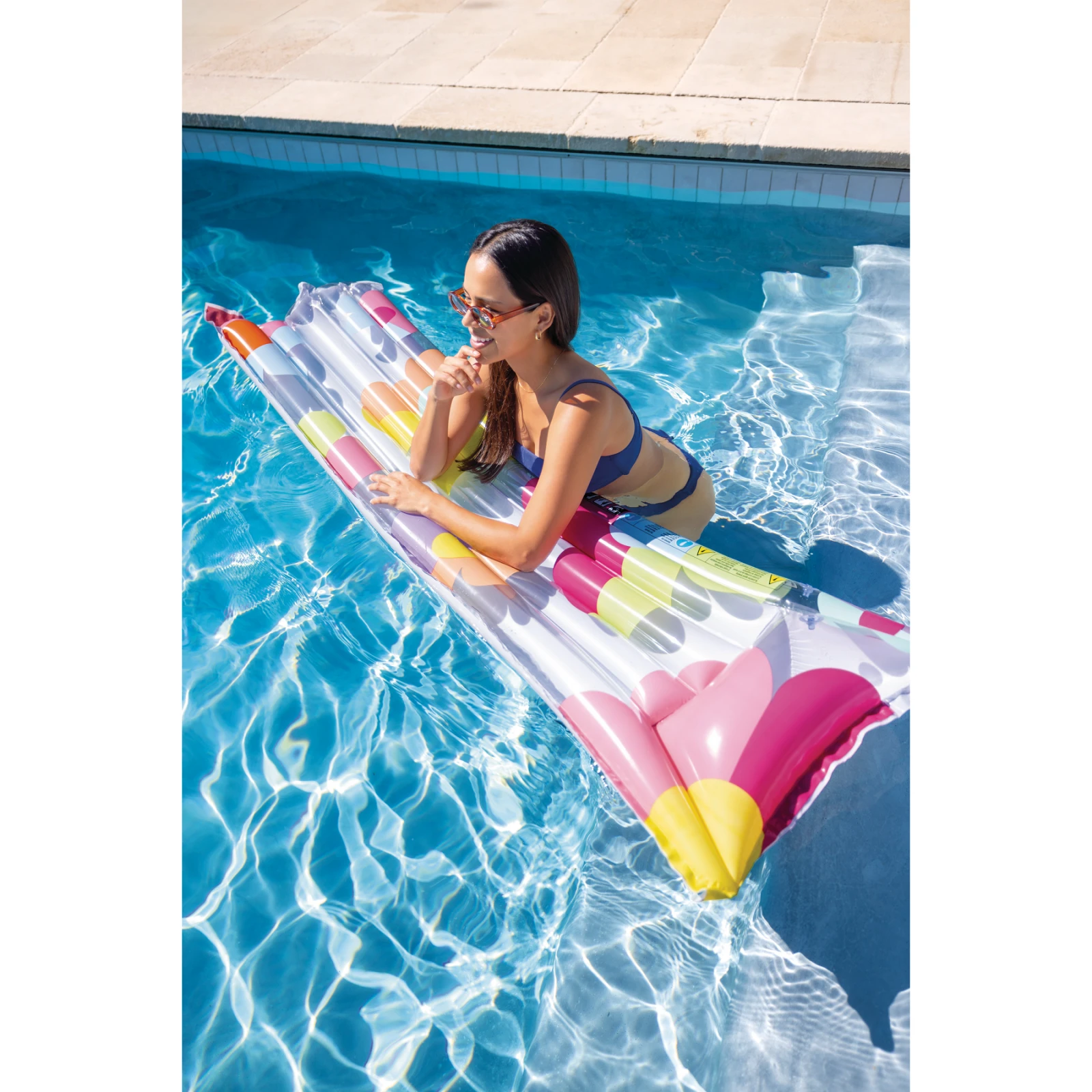 Pohodlné nafukovací lehátko s krásným letním motivem a nafukovacím polštářkem pod hlavou, to je Fashion Mats od firmy Intex.