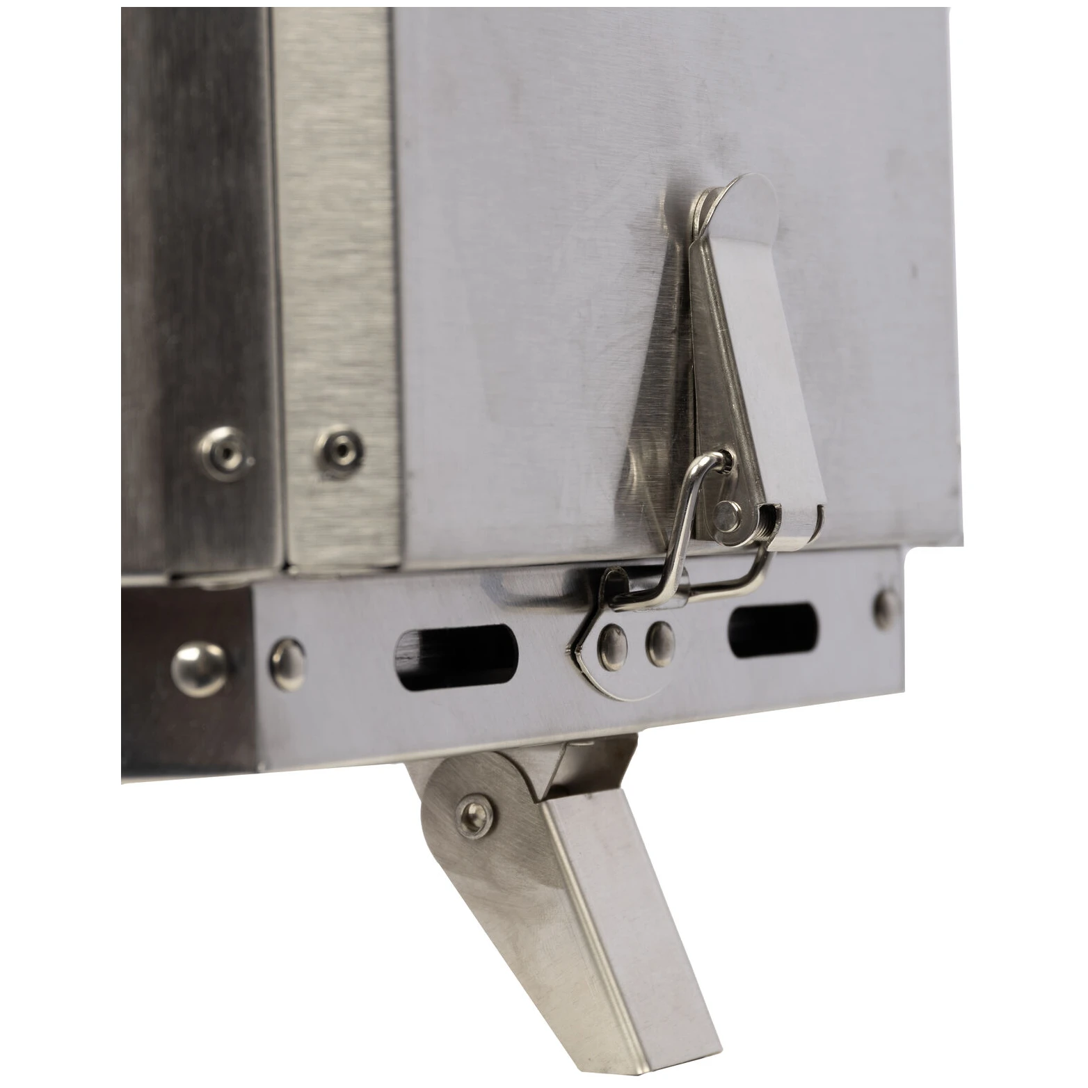 Kompaktní skládací konstrukce umožňuje snadné složení ohniště do plochého tvaru, díky čemuž se dobře převáží i skladuje. Integrovaná držadla usnadňují manipulaci a tři zámkové západky pevně spojují stěny se základní deskou, což zajišťuje stabilitu během používání. Součástí balení je také praktická taška, která chrání ohniště při přepravě a skladování.