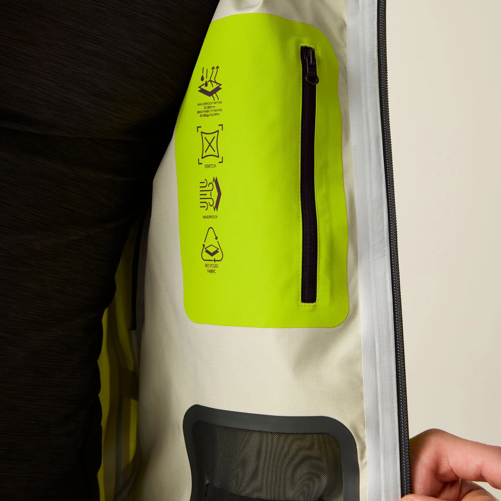 špičková ochrana ared 20/30 s voděodolností 20 000 a prodyšností 30 000 ze 100% polyesteru (včetně 50 % recyklovaného)