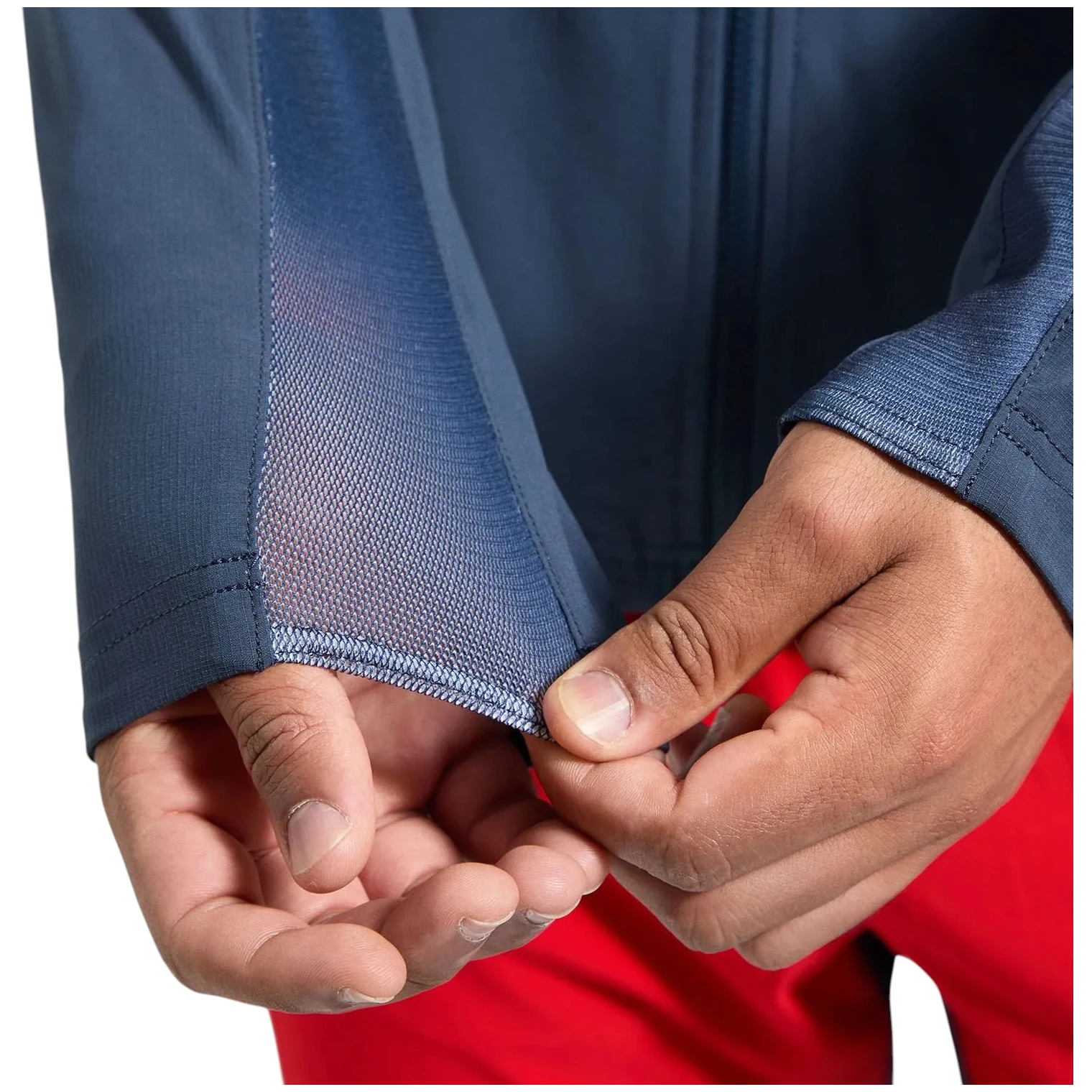 Ergonomický střih s předtvarovanými rukávy přirozeně kopíruje pohyb těla při lezení nebo scramblingu. Elastická kapuce kompatibilní s helmou poskytuje ochranu bez omezení výhledu. Elastické manžety s otvorem na palec zajišťují stabilitu rukávů i při dynamickém pohybu.