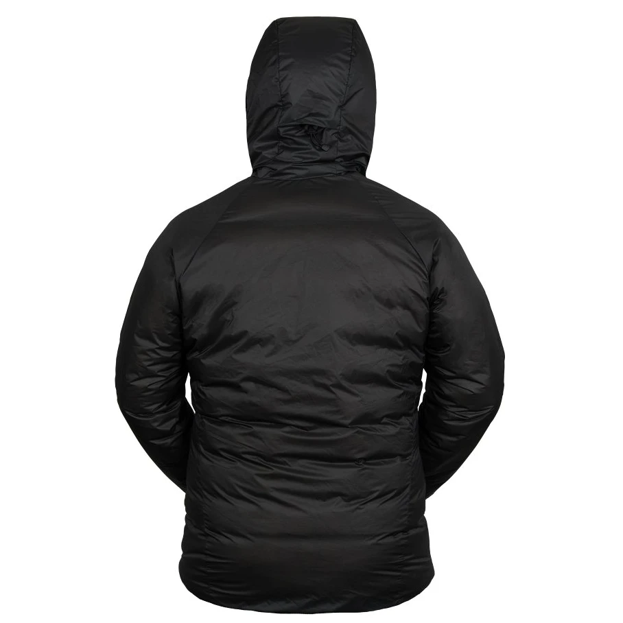 hybridní konstrukce: péřová izolace v těle a rukávech, syntetika v kapuci, límci a bocích pro lepší funkci ve vlhku
