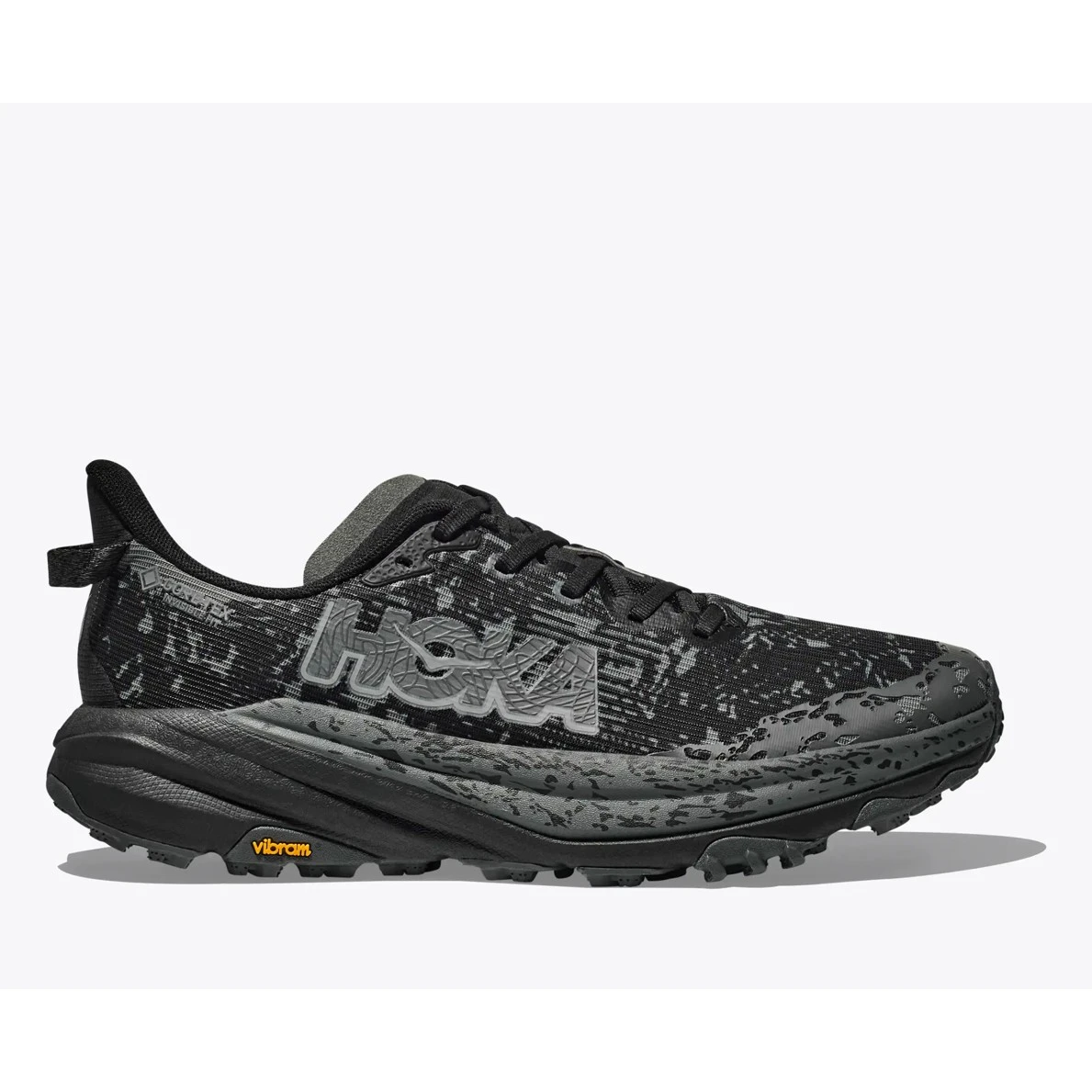 Běžecká bota Speedgoat 6 Gtx Wide od značky Hoka je navržená pro technické traily. 6. generace se vrací s nízkou hmotností a skvělou trakcí. Tato bota pokračuje od podrážky až po tkaničky s mezipodešví Vibram® Megagrip a s Traction Lug pro lepší přilnavost na volné půdě. Speedgoat 6 si zachovává stejnou výšku podešve a tvar rockeru (zakřivení podrážky), využívá lehčí směs mezipodešve a vydatnější dvouvrstvou žakárovou síťovinu, která vzbuzuje důvěru v jakémkoli terénu.