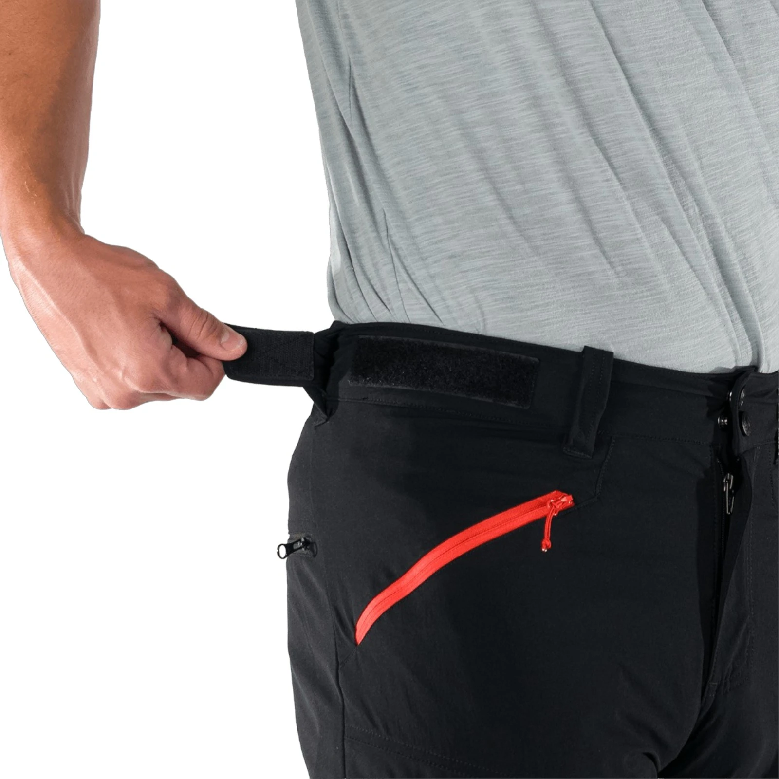 Hybridní konstrukce spojuje lehký 1-layer materiál s odolnějším 3-layer softshellem v namáhaných zónách, což zajišťuje lepší ochranu proti větru a vlhkosti. Díky 4-way stretch materiálu se kalhoty přizpůsobí každému pohybu bez omezení – ať už stoupáte, sedíte nebo překonáváte terénní překážky. Vodoodpudivá úprava bez PFC pomáhá odpuzovat kapky vody při lehkém dešti nebo kontaktu s mokrou trávou.