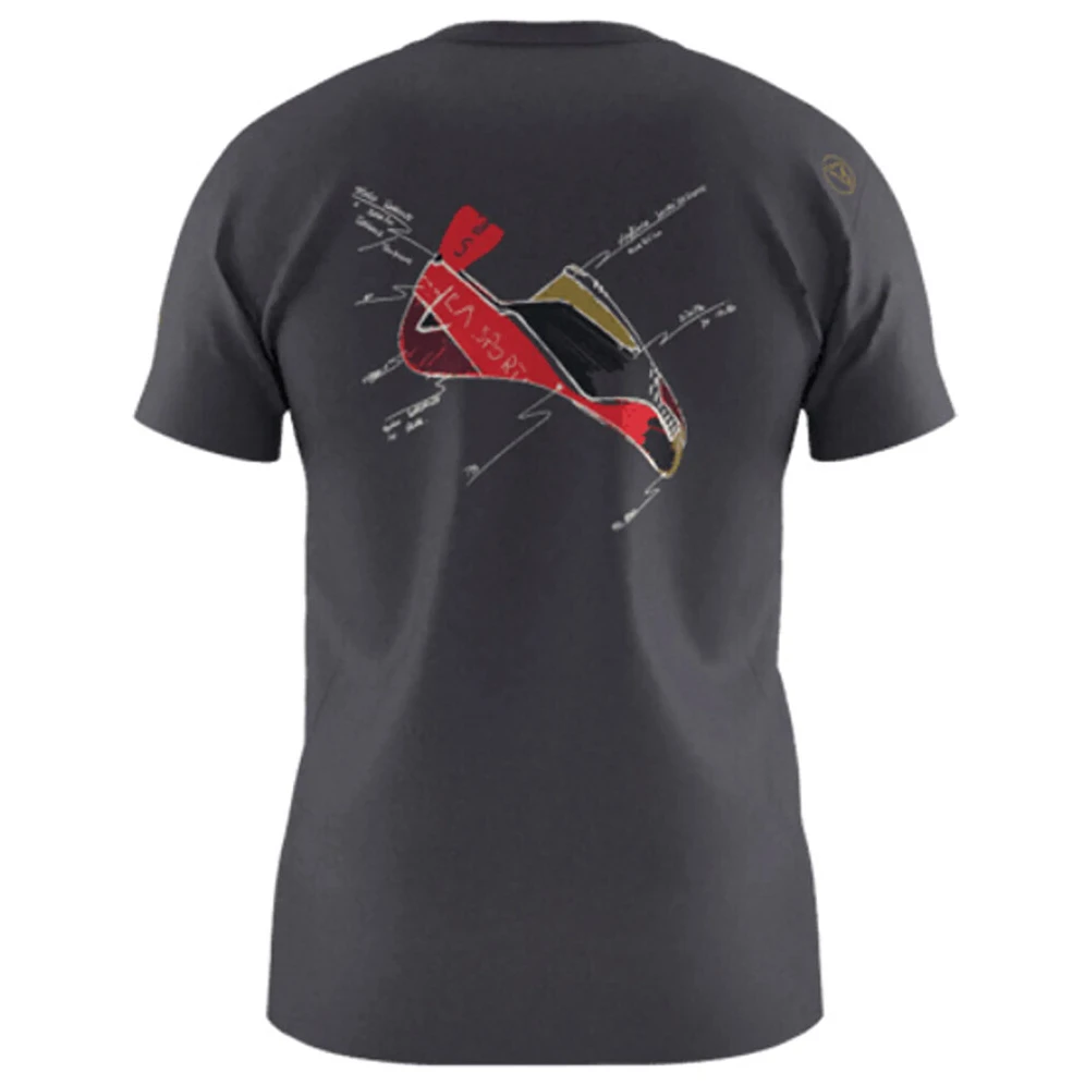 Pánské triko s krátkým rukávem a potiskem na zádech Mantra T-SHIRT Men od firmy La Sportiva perfektně podtrhne váš lezecký look.