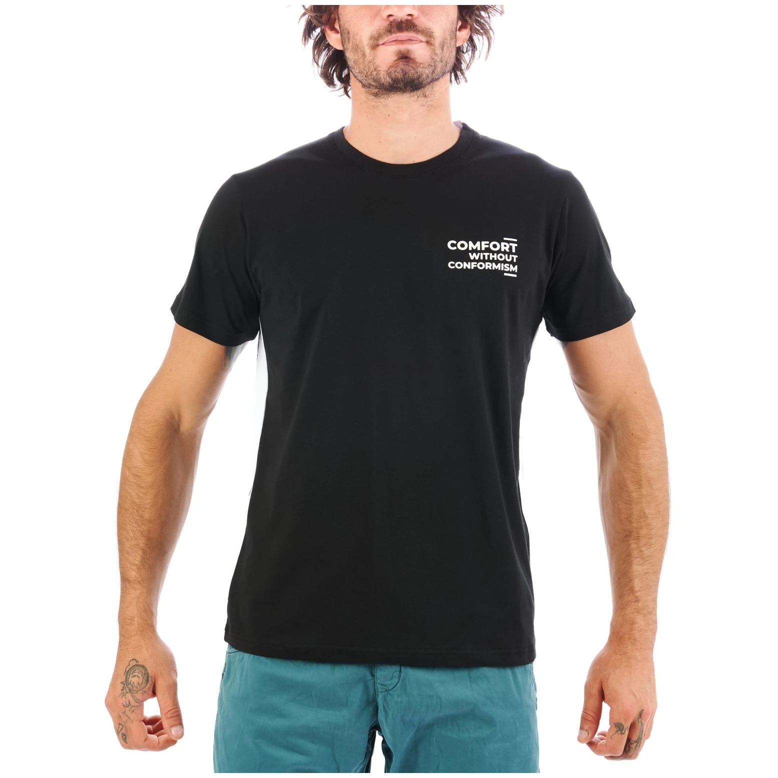 Nograd Comfort Without Conformism je pohodlné bavlněné triko, které spojuje volnost pohybu, prodyšnost a výrazný lezecký styl.