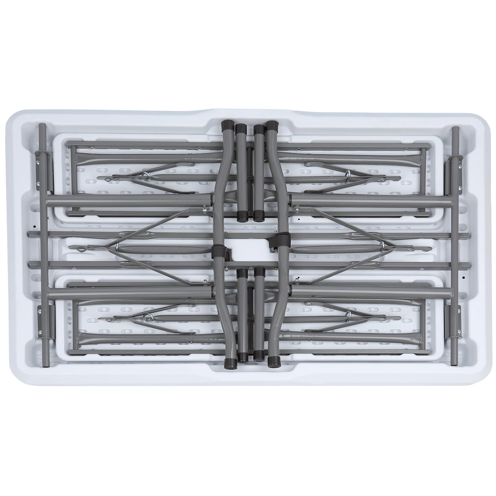 Konstrukce je vyrobena z oceli, která zajišťuje stabilitu a odolnost, zatímco deska stolu i lavice jsou z plastového materiálu, který se snadno udržuje a je vhodný pro venkovní použití. Set je navržen tak, aby byl maximálně praktický při transportu, lze jej složit do kompaktního tvaru o velikosti desky stolu, což usnadňuje skladování i přenášení. Hmotnost 15,9 kg odpovídá robustnější konstrukci a stabilitě při používání. Stůl nabízí také nastavitelnou výšku ve dvou úrovních, takže jej lze přizpůsobit podle aktuální potřeby.