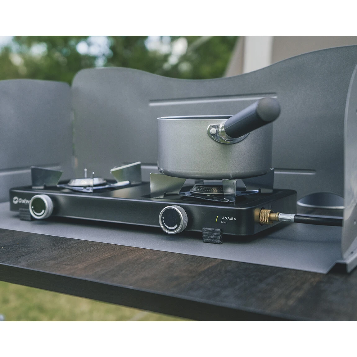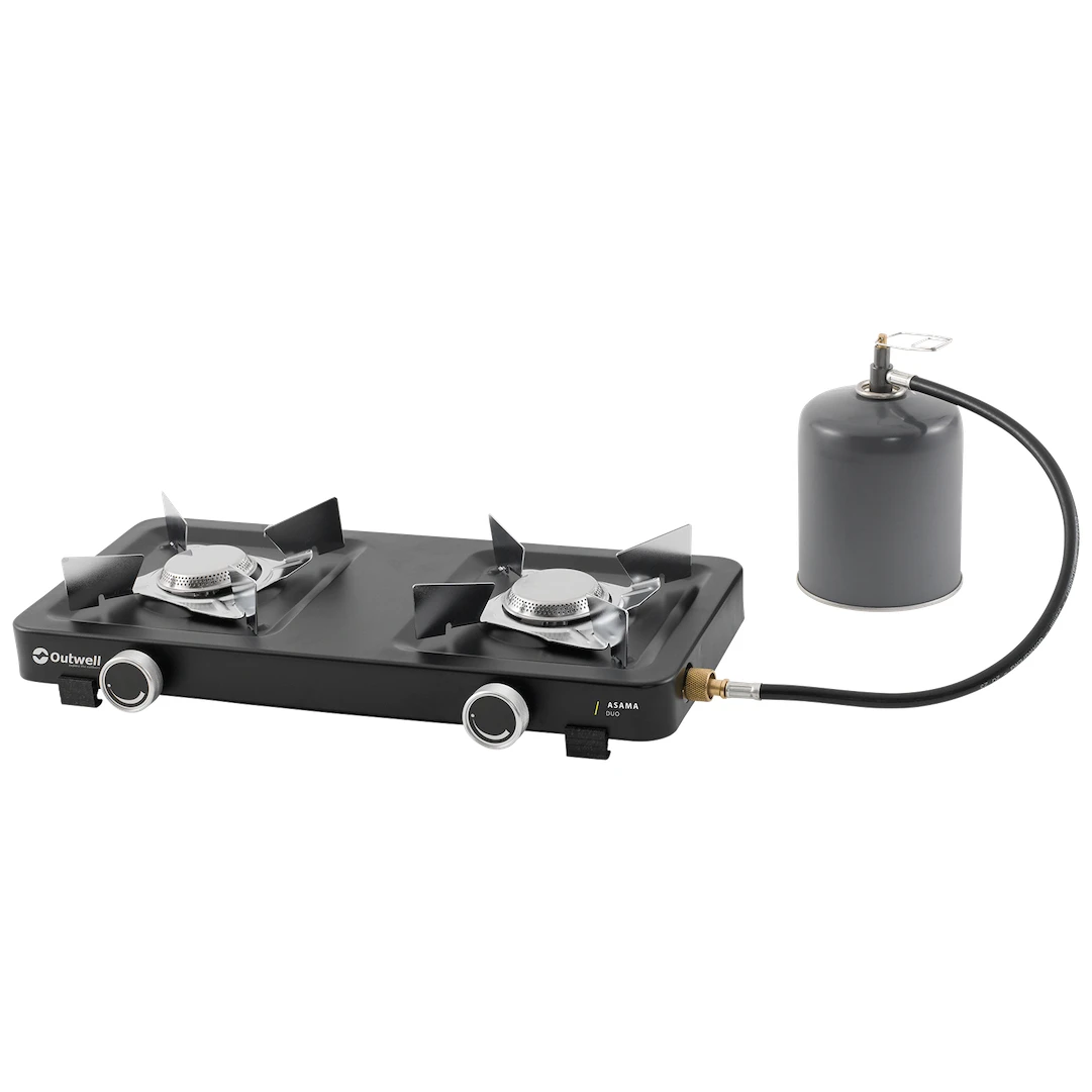 Dvouhořákový plynový vařič Asama Duo od dánského výrobce Outwell je nezbytným pomocníkem do kempu i na zahradu. Materiál z oceli a nerez oceli zaručuje dlouhou životnost. Konstrukce je nízká, velmi stabilní díky plastovým nožičkám a hořáky jsou opatřeny širokou mřížkou pro bezpečné postavení nádoby.
