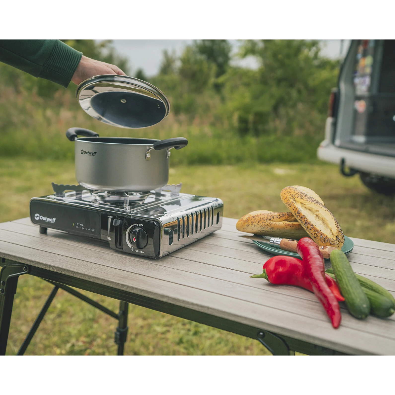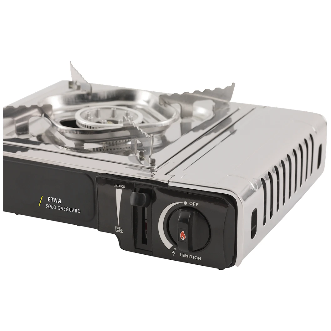 Jednohořákový plynový vařič Etna Solo Gasguard od dánského výrobce Outwell je nezbytným pomocníkem do kempu i na zahradu. Materiál z oceli a nerez oceli zaručuje dlouhou životnost. Konstrukce je nízká, velmi stabilní díky plastovým nožičkám a hořáky jsou opatřeny širokou mřížkou pro bezpečné postavení nádoby.