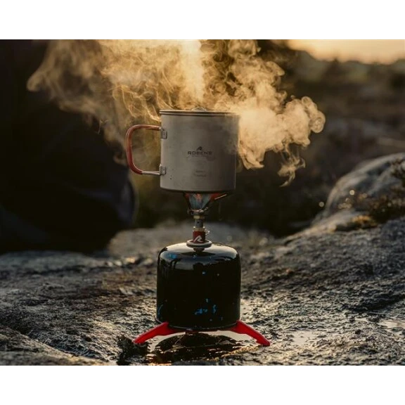 Robens Fire Wisp Solo Cook Set UL je kompaktní plynový vařič s integrovaným hrncem z titanu, víkem a sporkem pro rychlé a úsporné vaření v terénu.