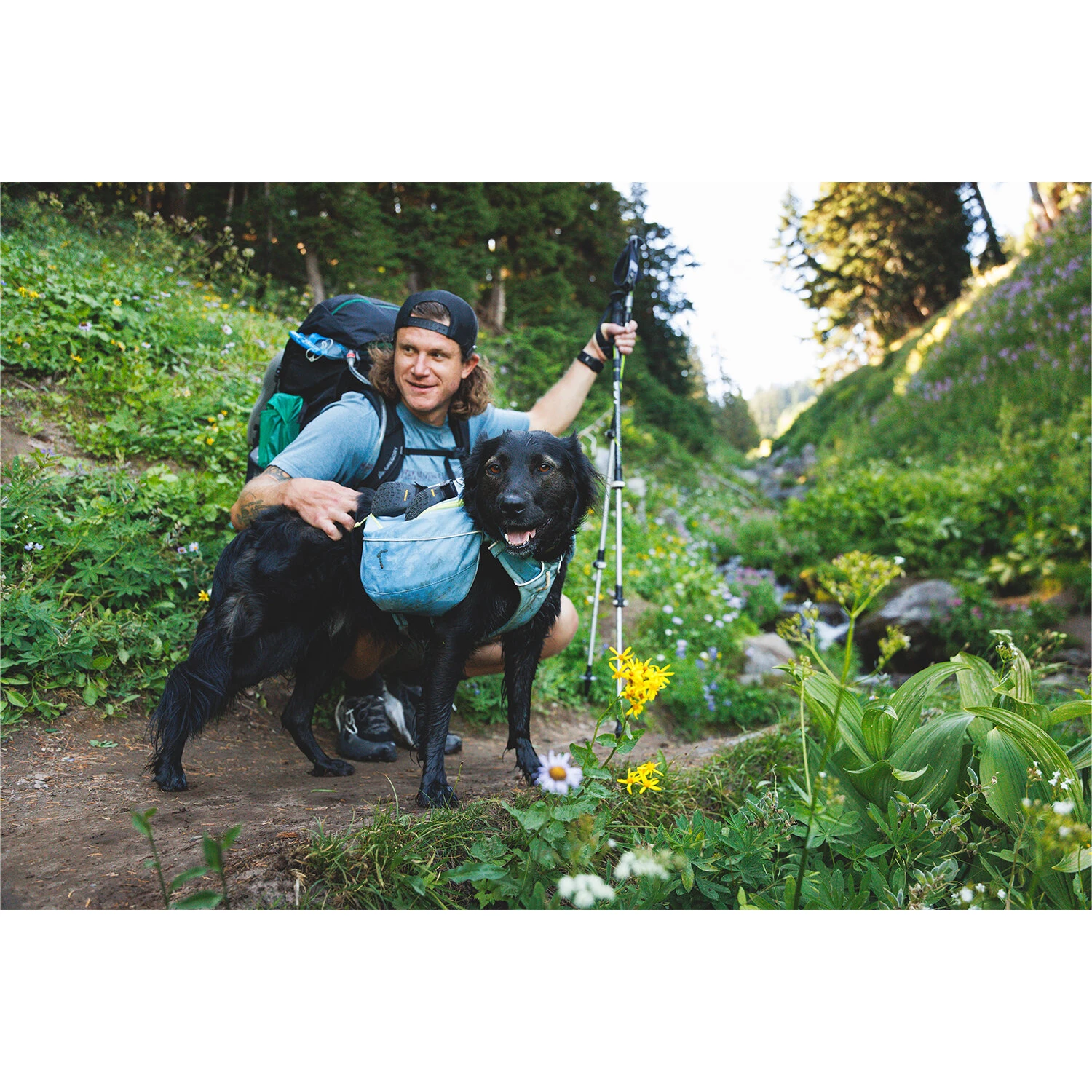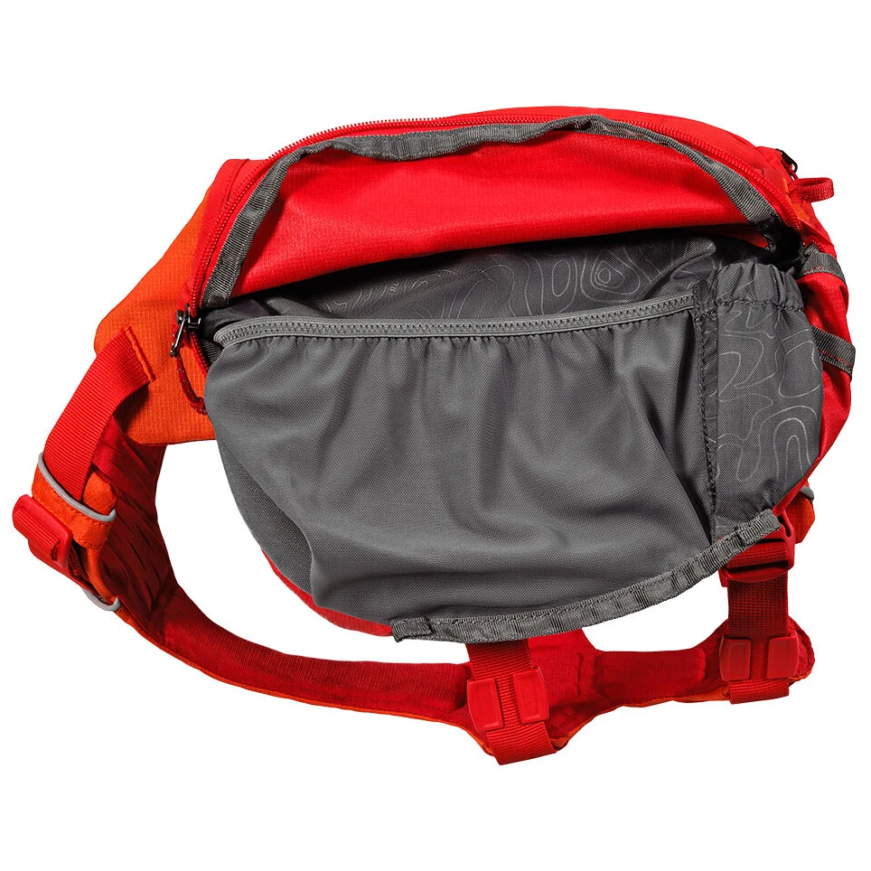 Ruffwear Palisades Pack™ jsou objemné psí brašny na vícedenní treky s možností odepnout kapsy od postroje pro maximální flexibilitu.