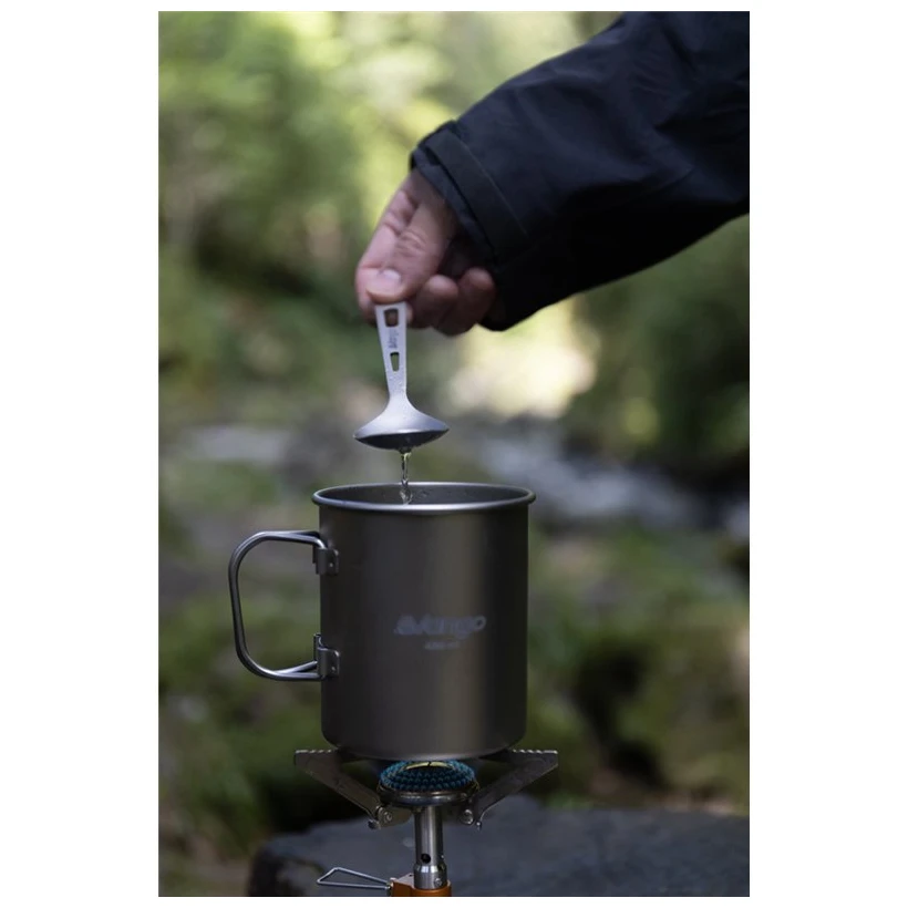 Vango Titanium Cutlery Set je kompaktní set obsahující nůž, vidličku a lžíci vyrobené z medicínského titanu. Tento ultralehký set je o 45 % lehčí než ocel a nabízí vynikající pevnost a odolnost. Titan je odolný vůči vysokým i nízkým teplotám, nerezne a nekoroduje, což zajišťuje dlouhou životnost a bezpečné použití s potravinami. Set je dodáván s úložným vakem pro pohodlné uložení.