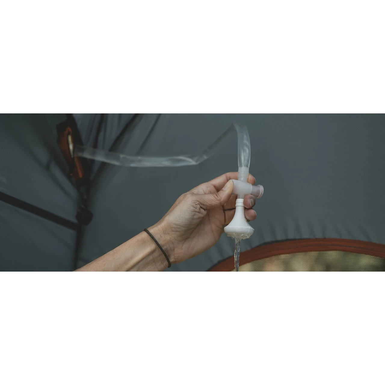 Uvnitř je u stropu háček, který je ideální pro zavěšení sprchy nebo ručníku. Dále je zde držák toaletního papíru. Síťované kapsy pojmou veškeré potřebné drobnosti. Stan má větrací otvor, který lze zcela uzavřít.