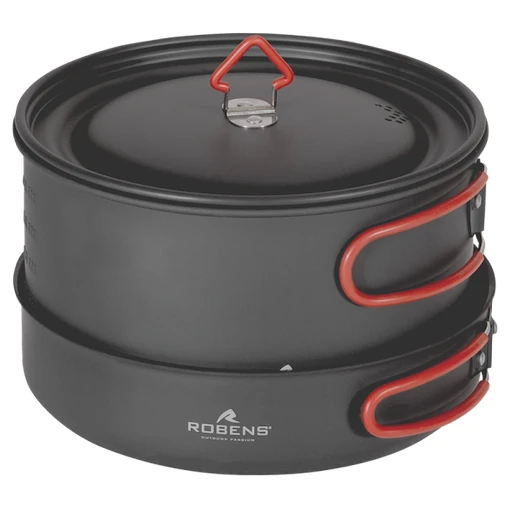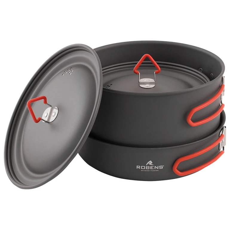 Robens Basecamp Pro Ceramic Cook Set XL je skládací hliníková sada nádobí s keramickým povrchem pro pohodlné vaření a velmi nízkou hmotností, kterou využijete při kempování.