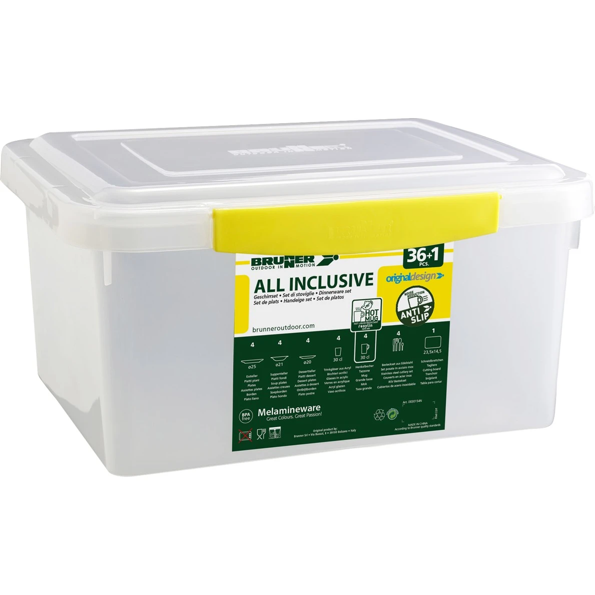 All Inclusive Space od značky Brunner je vysoce odolná a stylová sada nádobí o 36 kusech, která obsahuje vše potřebné pro dokonalý zážitek z kempování.